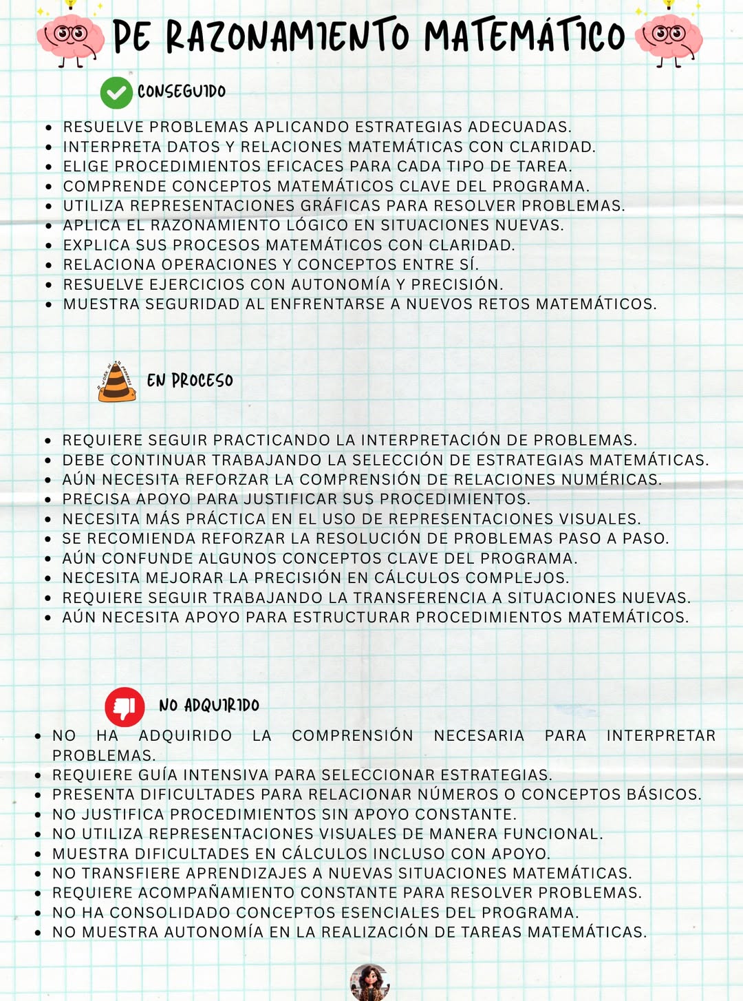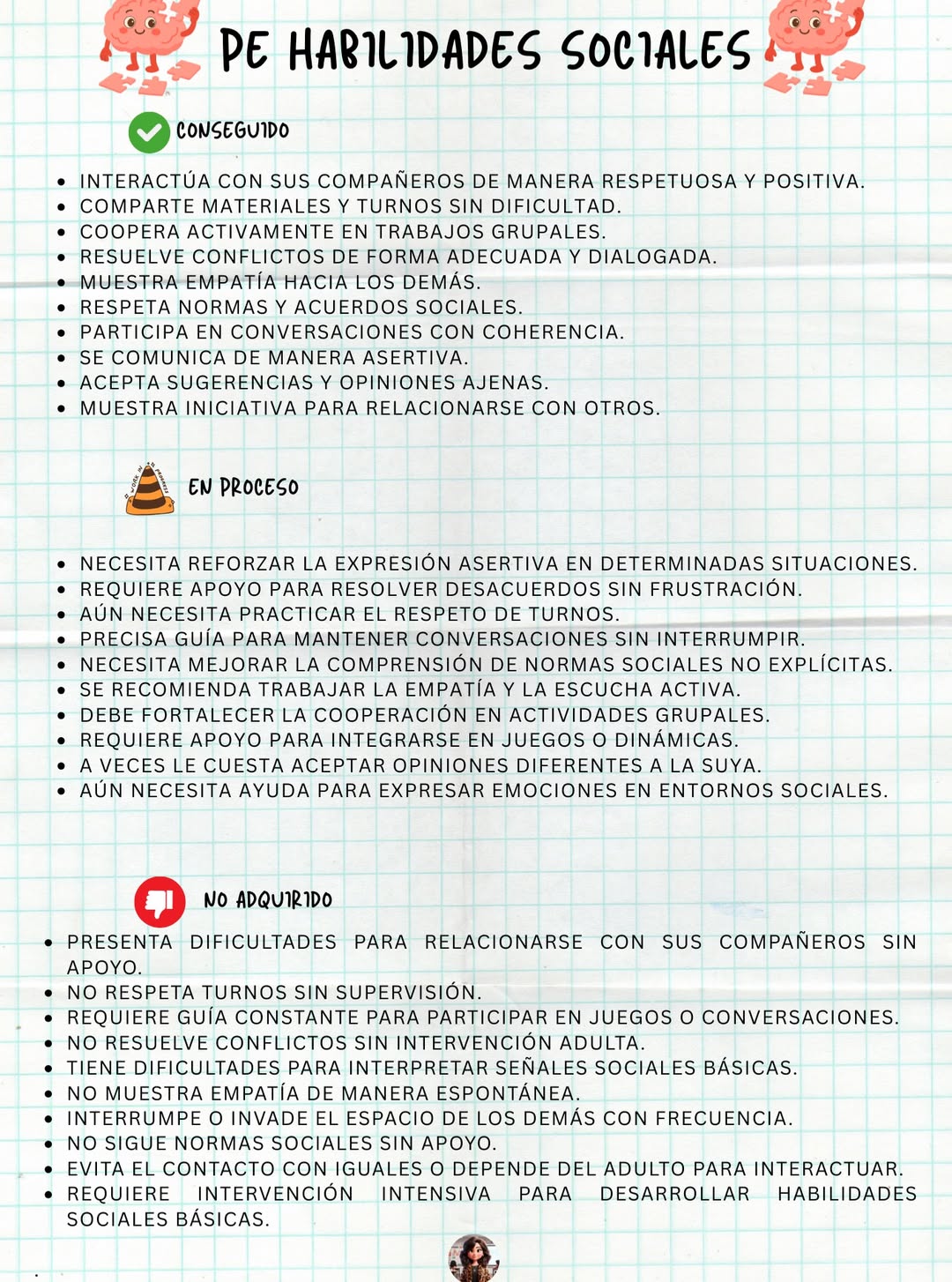 En este pack encontrarás frases clasificadas por niveles (conseguido, en proceso y no adquirido) en las siguientes áreas: