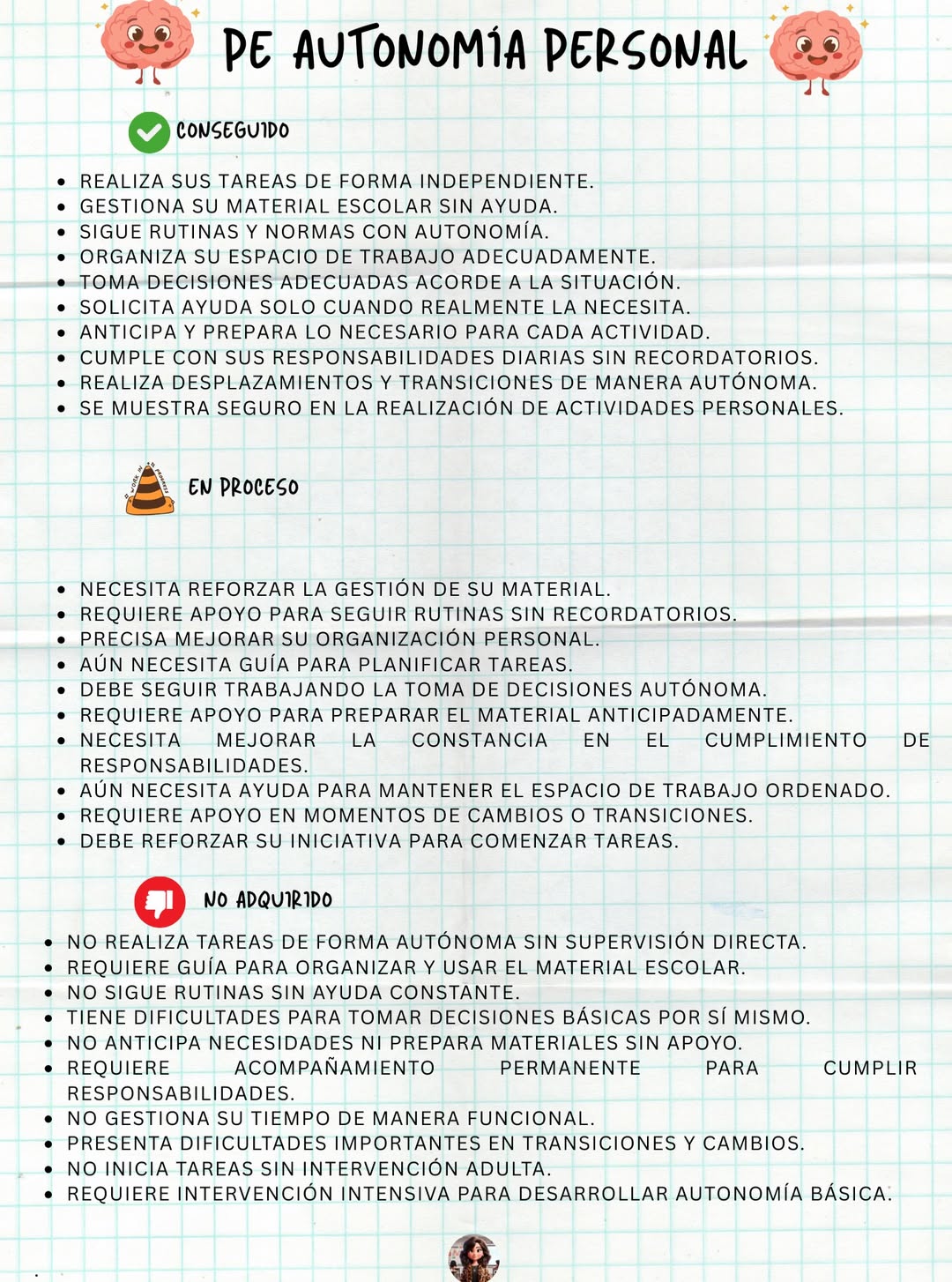 Autonomía personal (rutinas, organización, responsabilidad).