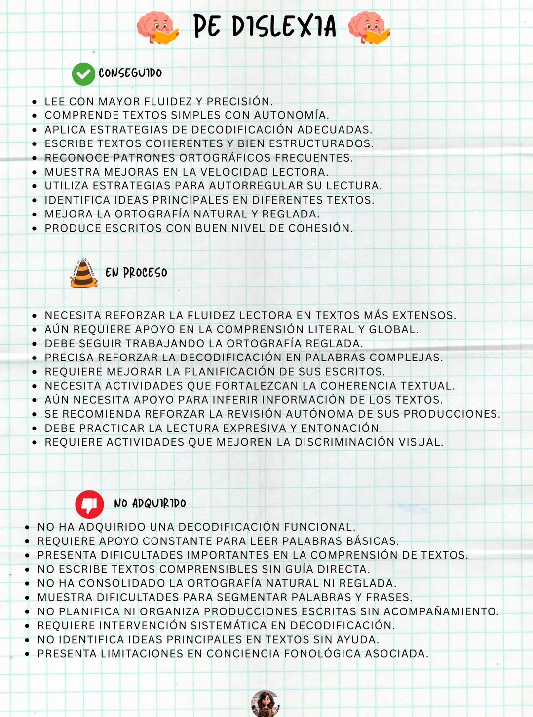 Dislexia (decodificación, comprensión lectora, ortografía).