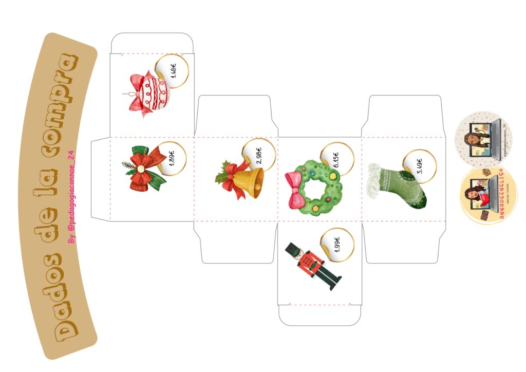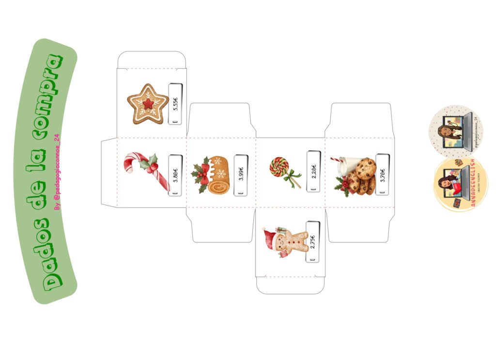 El alumnado lanza los dados, anota los productos que aparecen y suma los precios para calcular el total de su compra. Puede trabajarse de forma individual, en parejas o en pequeños grupos, adaptando la dificultad según el nivel. Es ideal para rincones matemáticos, talleres, refuerzo o sesiones lúdicas previas a las vacaciones.