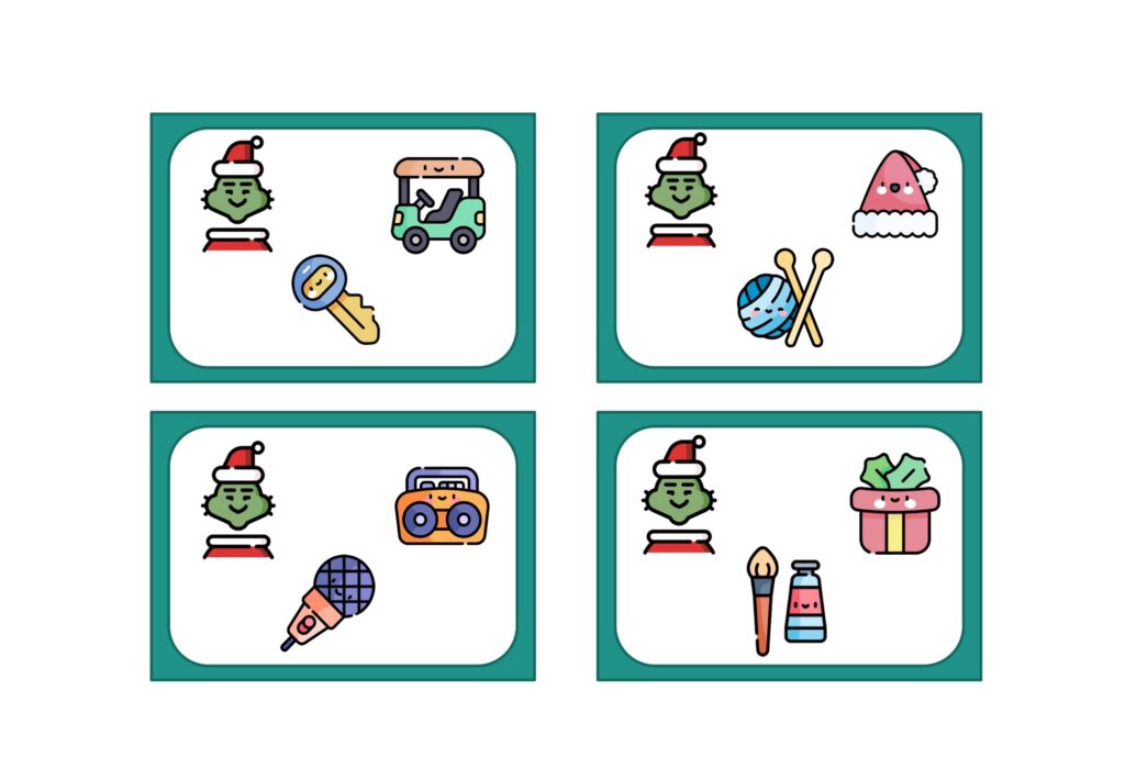 Tableros visuales para crear historias navideñas a partir de personajes, objetos, tiempos y lugares.
