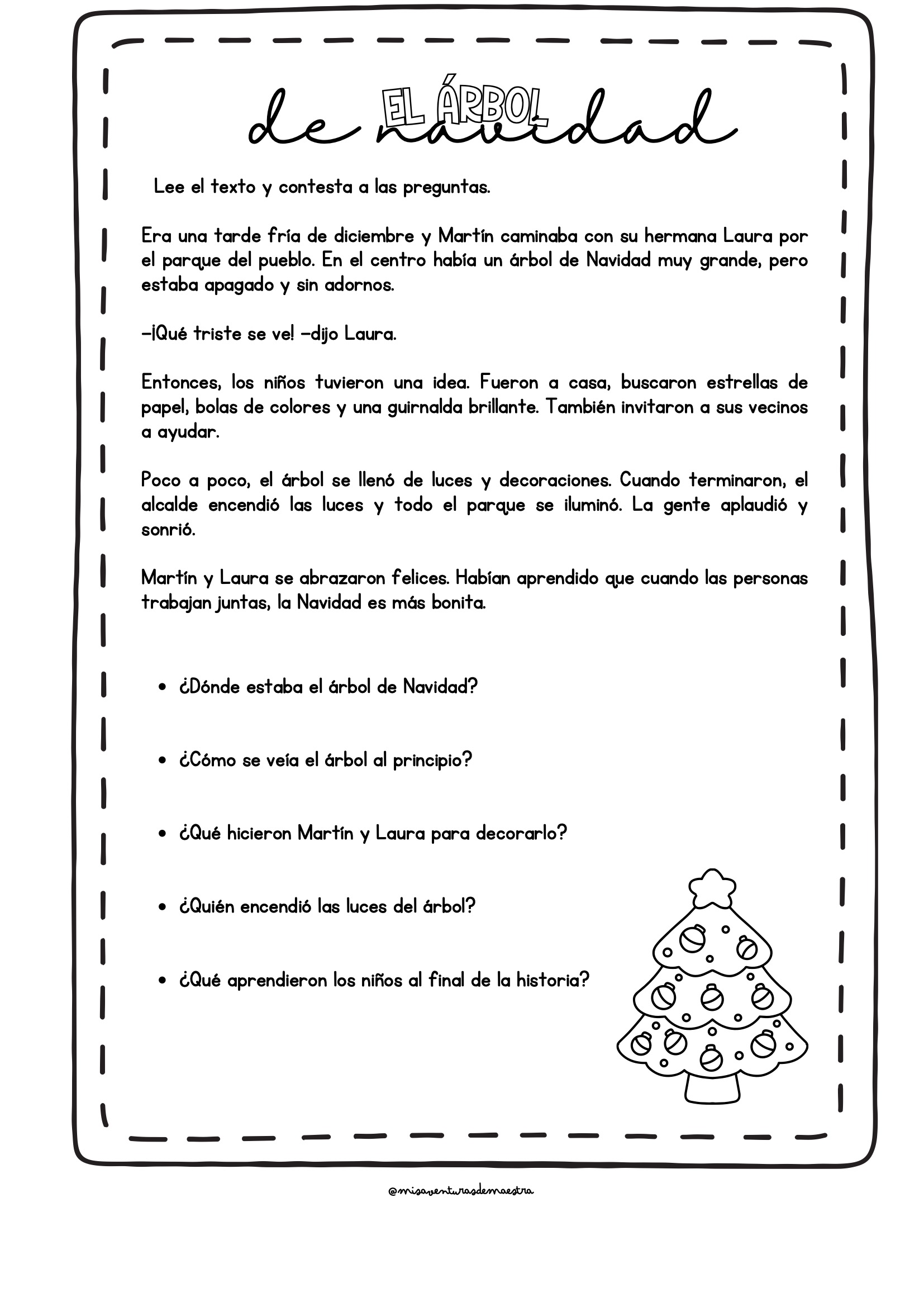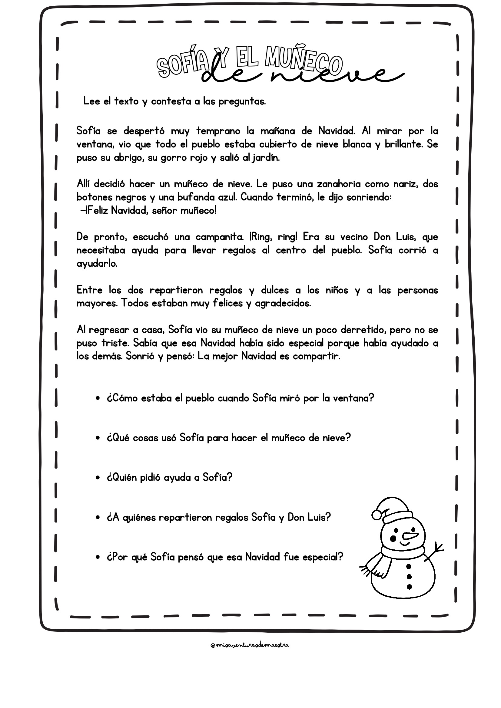 Comprensión lectora con textos navideños y preguntas