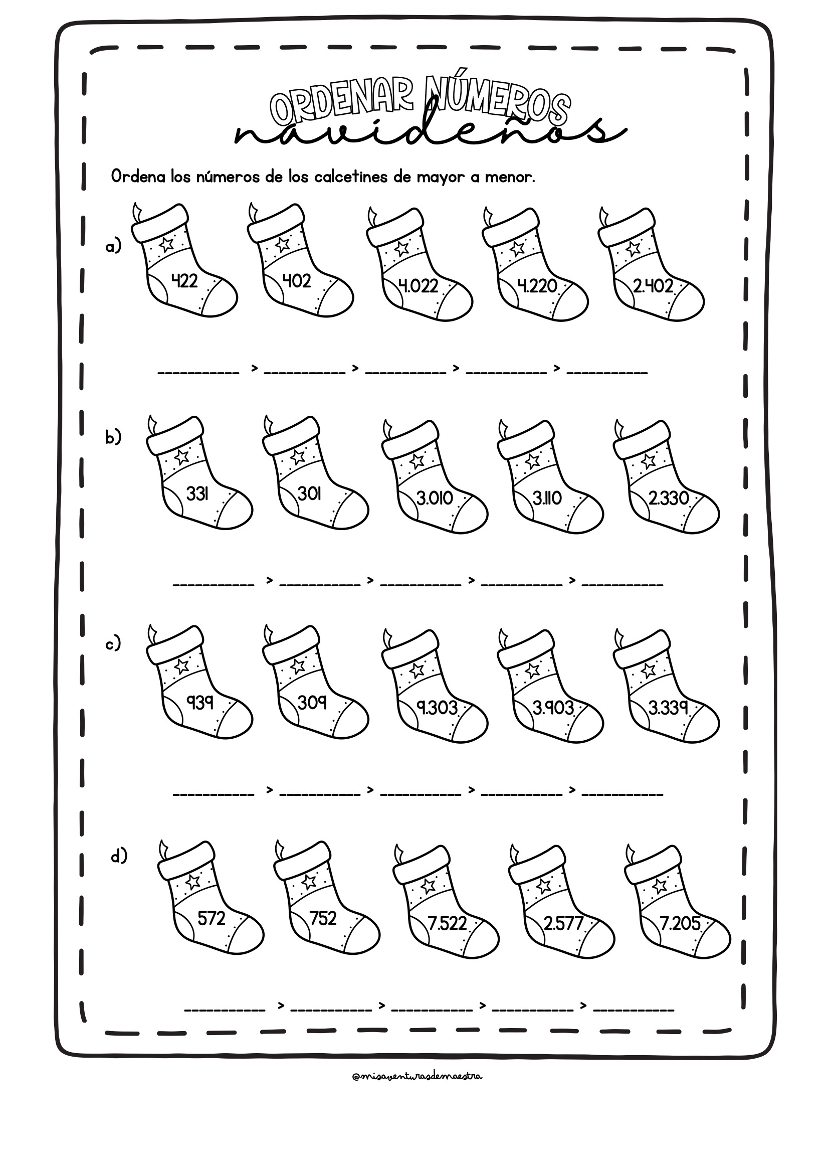 Numeración: ordenar, comparar y escribir números