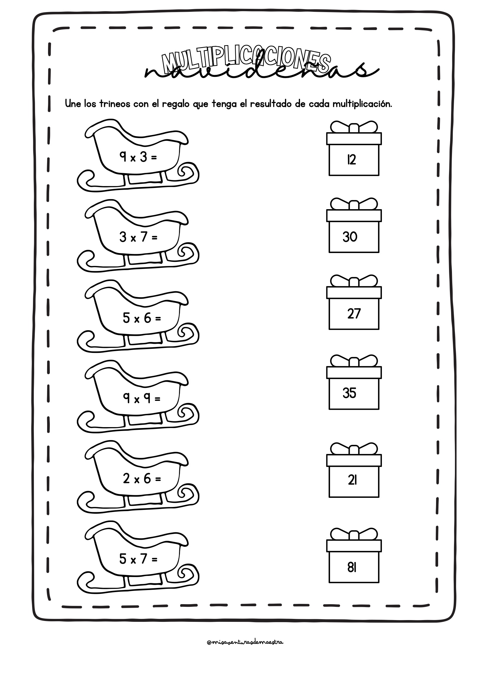 Sumas, restas y multiplicaciones con contexto navideño