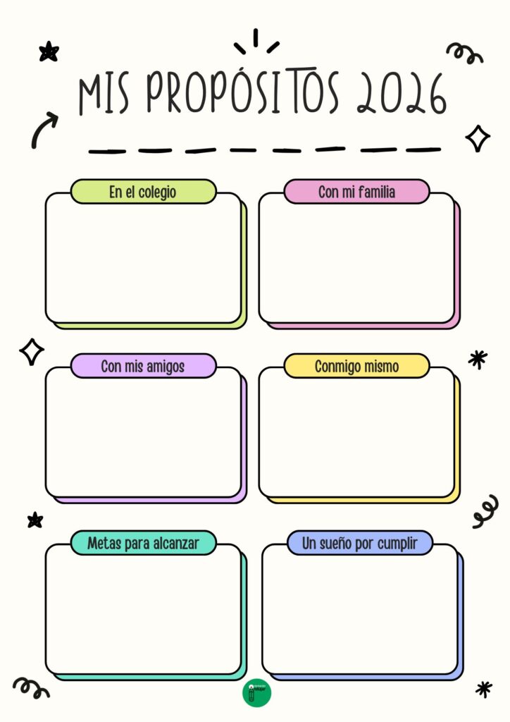 Comenzar un nuevo año es una oportunidad perfecta para que los niños reflexionen sobre sí mismos y expresen aquello que desean mejorar o alcanzar, por eso en este blog compartimos una ficha pensada especialmente para alumnado de primaria en la que pueden plantear sus propósitos para 2026 de una forma sencilla, cercana y significativa. A través de diferentes apartados —como la familia, los amigos, el colegio y un sueño por cumplir— los niños tienen la oportunidad de pensar en su comportamiento, sus relaciones y sus ilusiones, favoreciendo la educación emocional, la autoestima y la responsabilidad personal. Esta actividad no solo les ayuda a escribir y organizar ideas, sino que también promueve valores como el respeto, el esfuerzo y la empatía, convirtiéndose en un recurso ideal para trabajar en el aula al inicio del año y acompañar su crecimiento personal de manera positiva y motivadora.