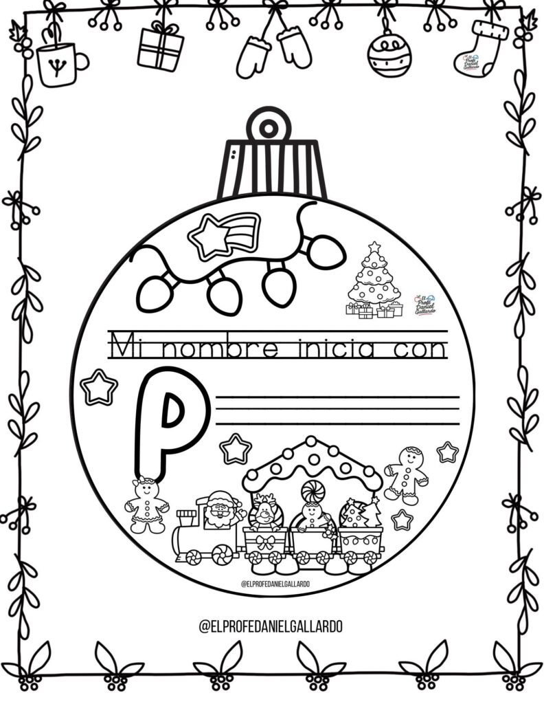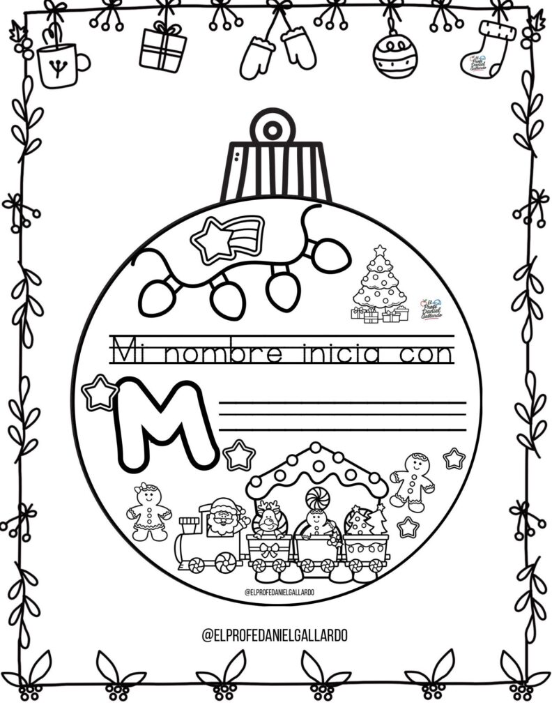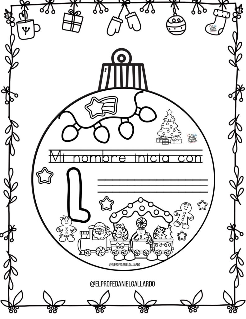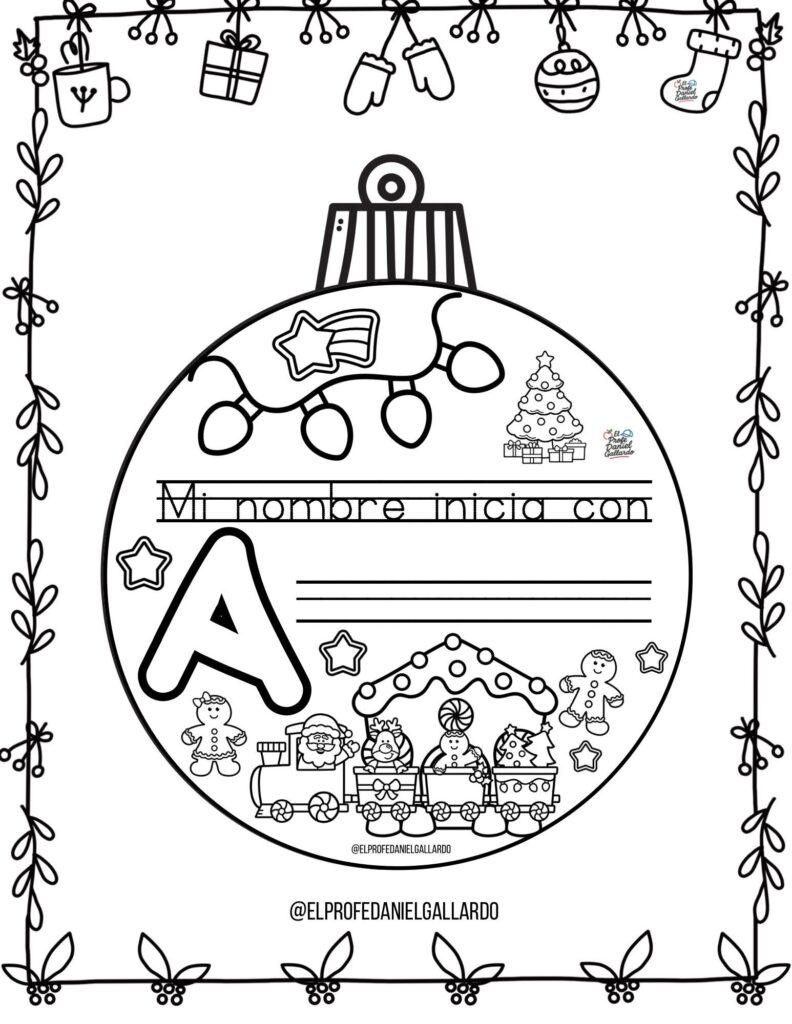 🎄 Bolas de Navidad para colorear: Mi nombre empieza por…