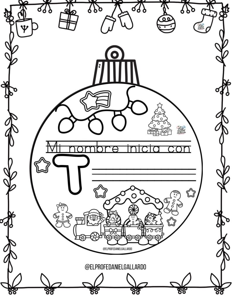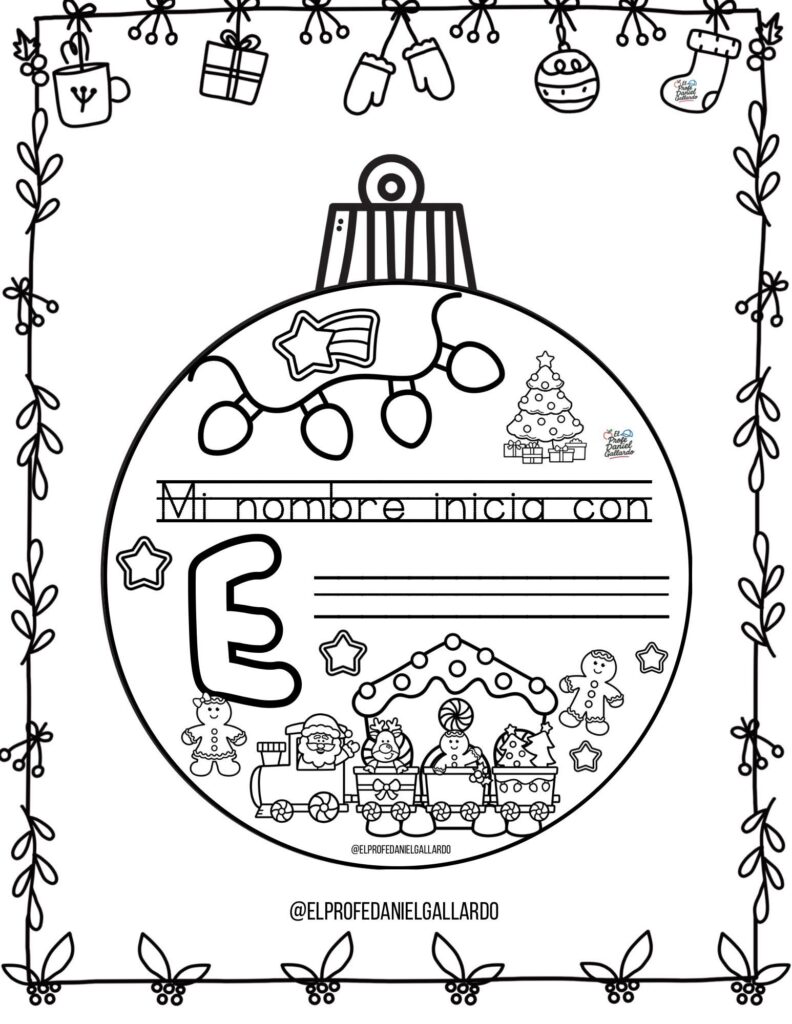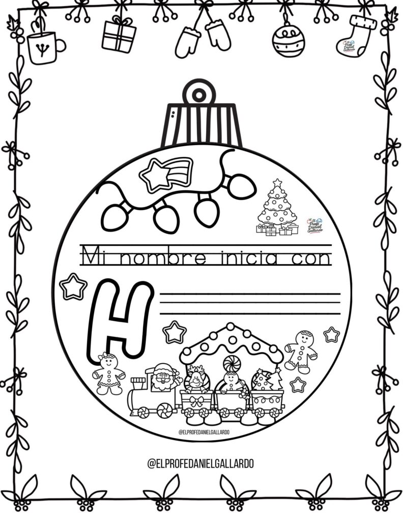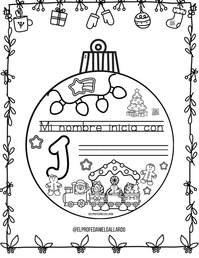 🎄 Bolas de Navidad para colorear: Mi nombre empieza por…