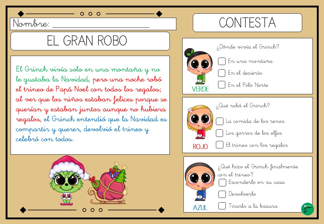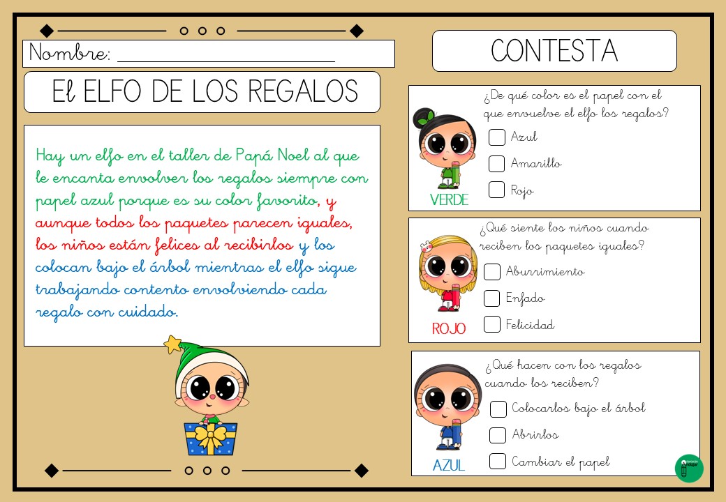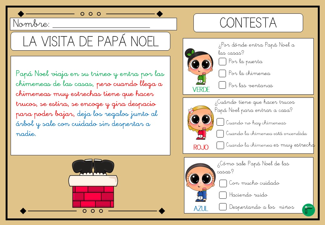 Lecturas comprensivas con pistas colores Navidad