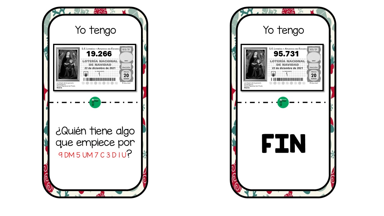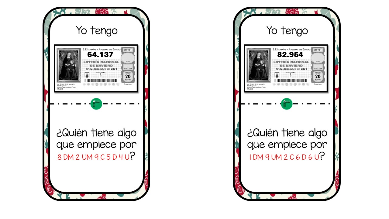 Hoy compartimos un divertido juego numérico ideal para estas fechas, basado en el conocido juego “¿Quién tiene? Yo tengo”, que ya hemos utilizado y compartido en muchas ocasiones con diferentes temáticas y que siempre funciona muy bien en el aula. En esta ocasión, lo hemos adaptado completamente al ambiente navideño, incorporando un elemento muy característico de estas fechas: la Lotería de Navidad.
