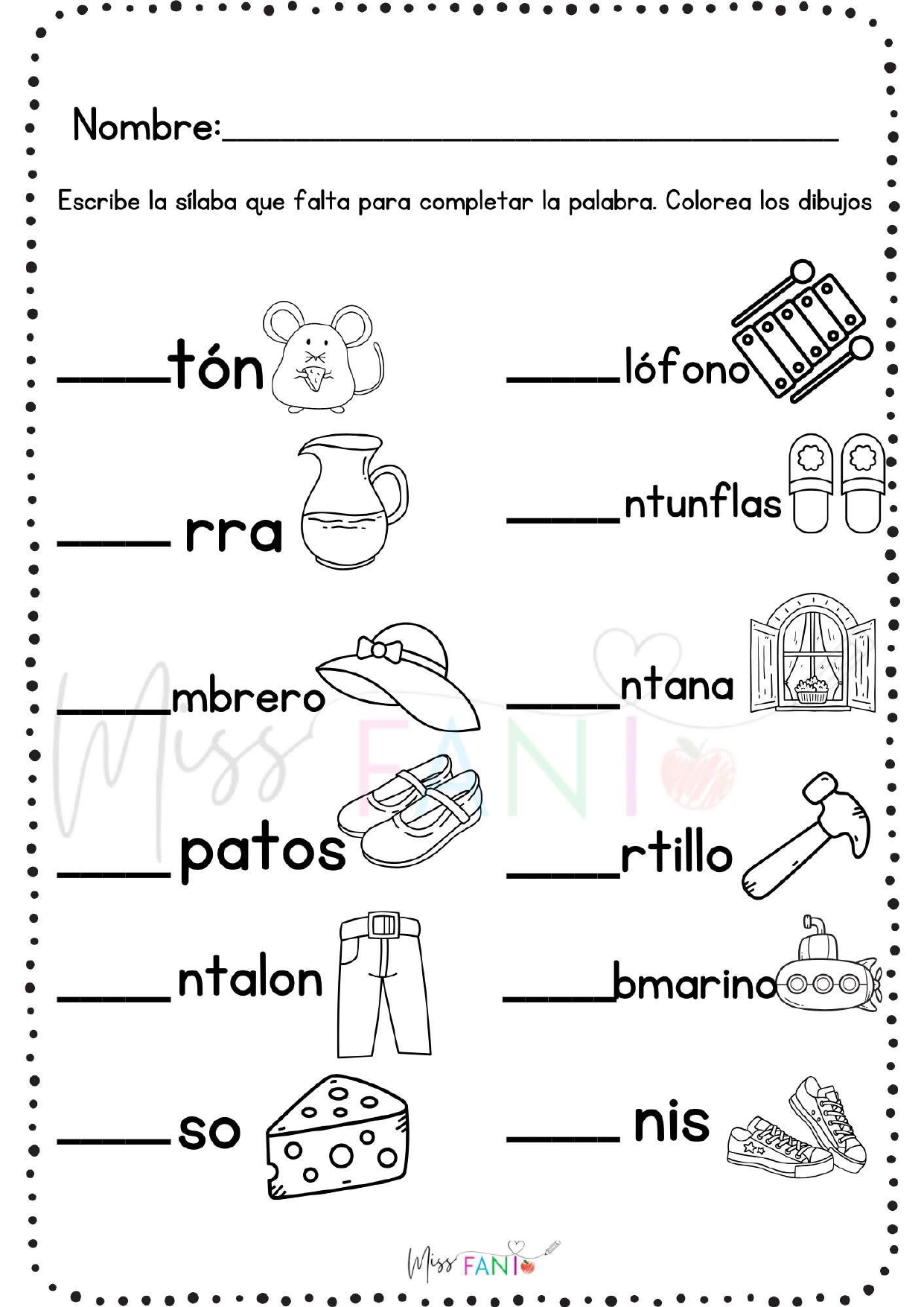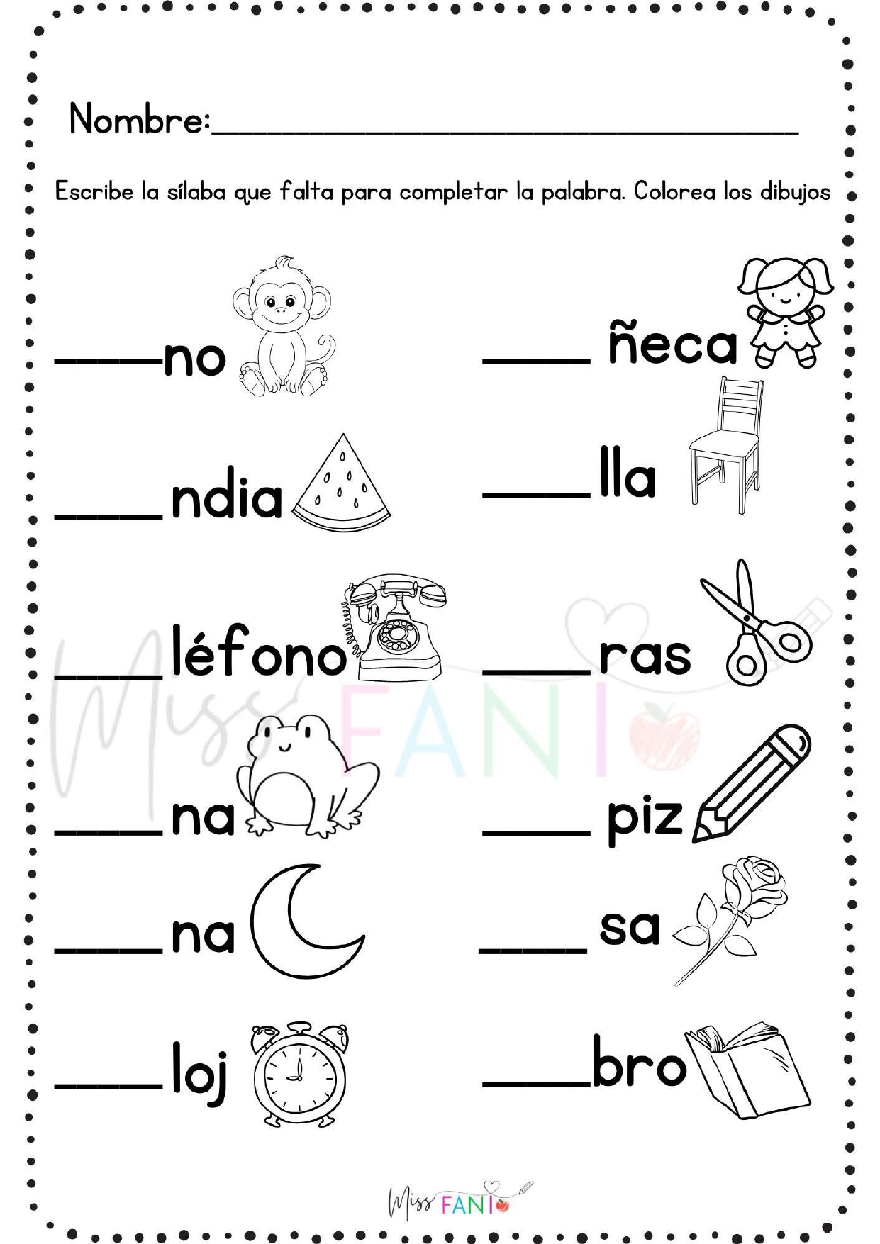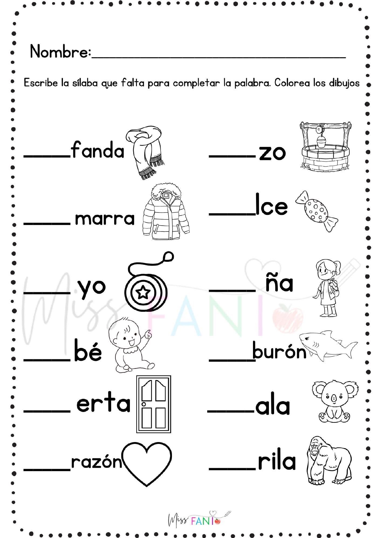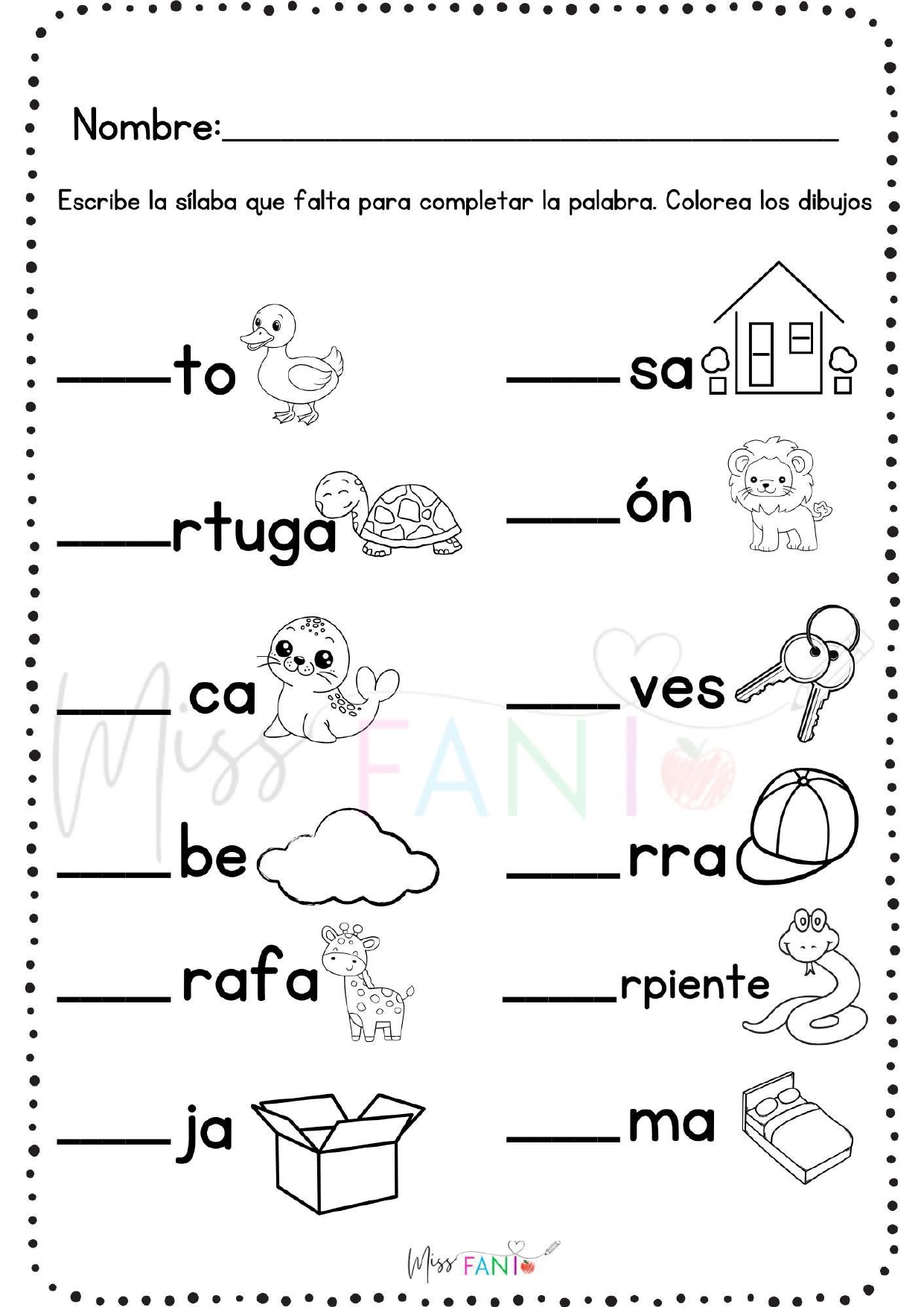 El dominio de las sílabas es una base fundamental en el aprendizaje de la lectura. Cuando los niños aprenden a identificar y combinar sílabas, desarrollan habilidades clave como la decodificación, el reconocimiento visual de palabras y la fluidez lectora. Estas fichas imprimibles ayudan a consolidar dichos procesos mediante actividades claras, estructuradas y visualmente atractivas.