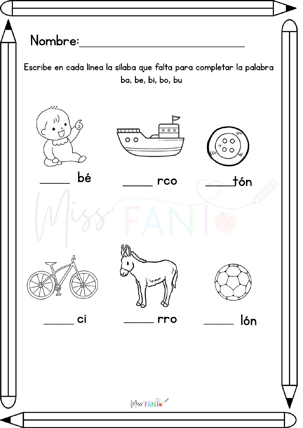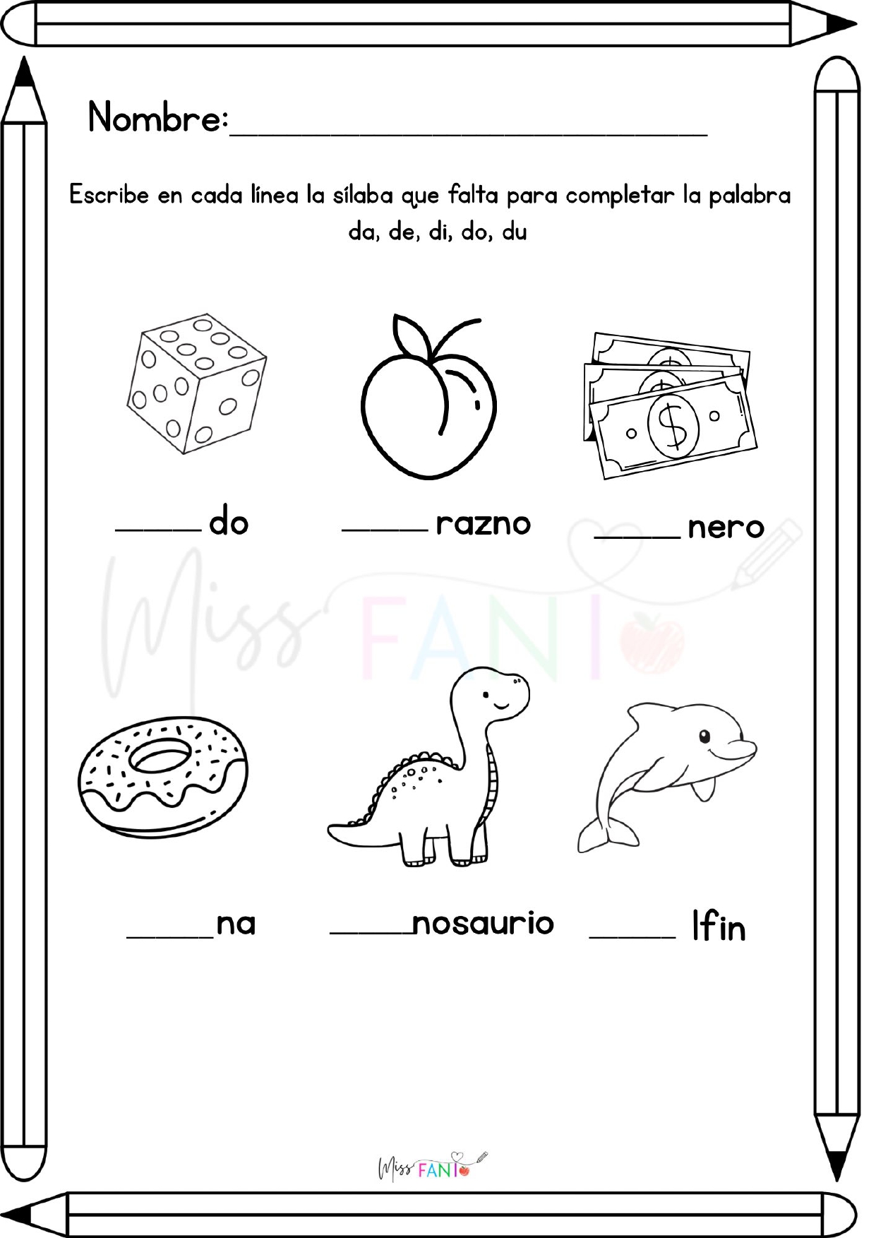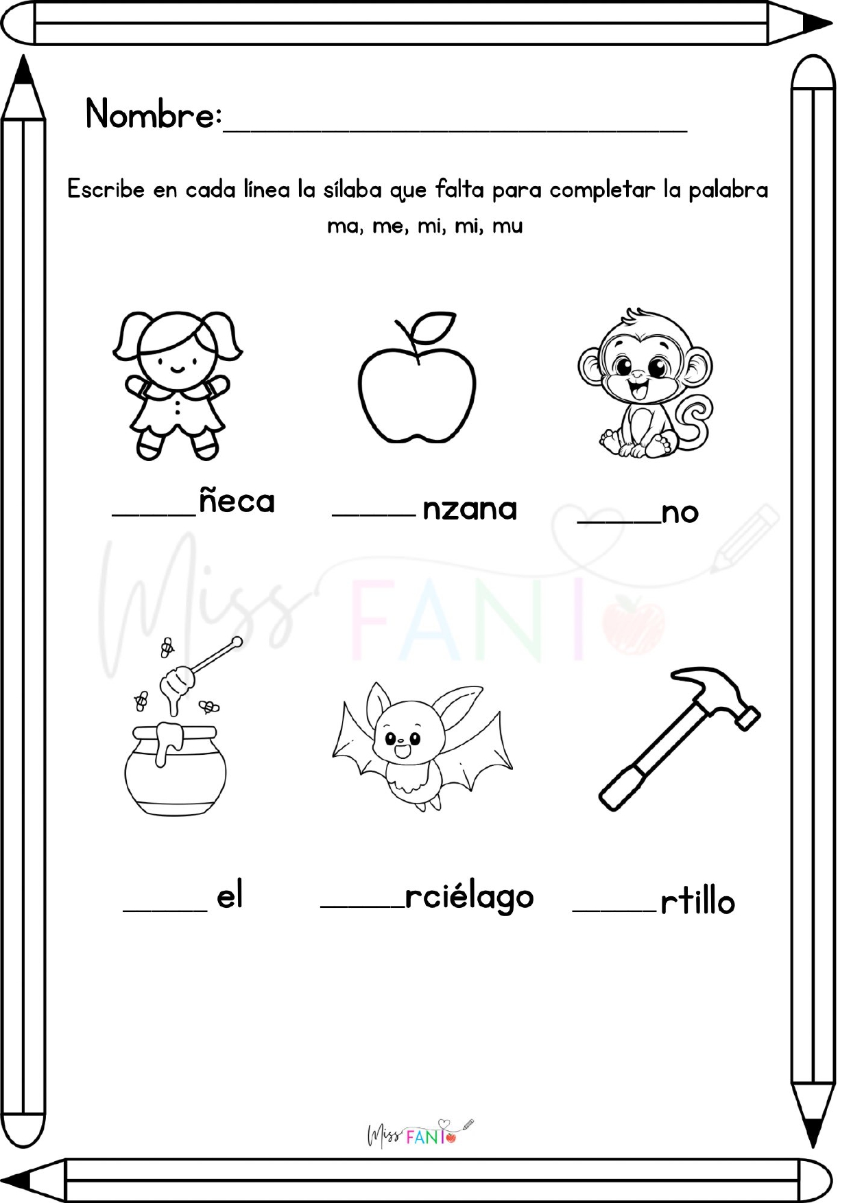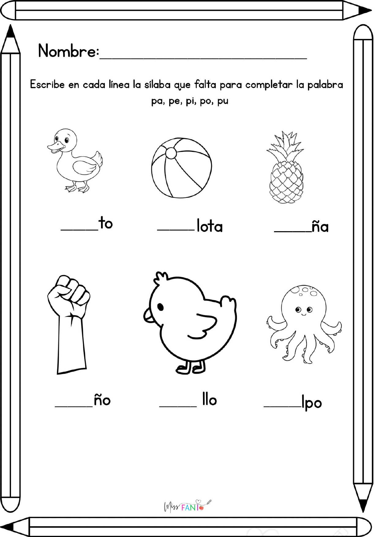 El dominio de las sílabas es una base fundamental en el aprendizaje de la lectura. Cuando los niños aprenden a identificar y combinar sílabas, desarrollan habilidades clave como la decodificación, el reconocimiento visual de palabras y la fluidez lectora. Estas fichas imprimibles ayudan a consolidar dichos procesos mediante actividades claras, estructuradas y visualmente atractivas.