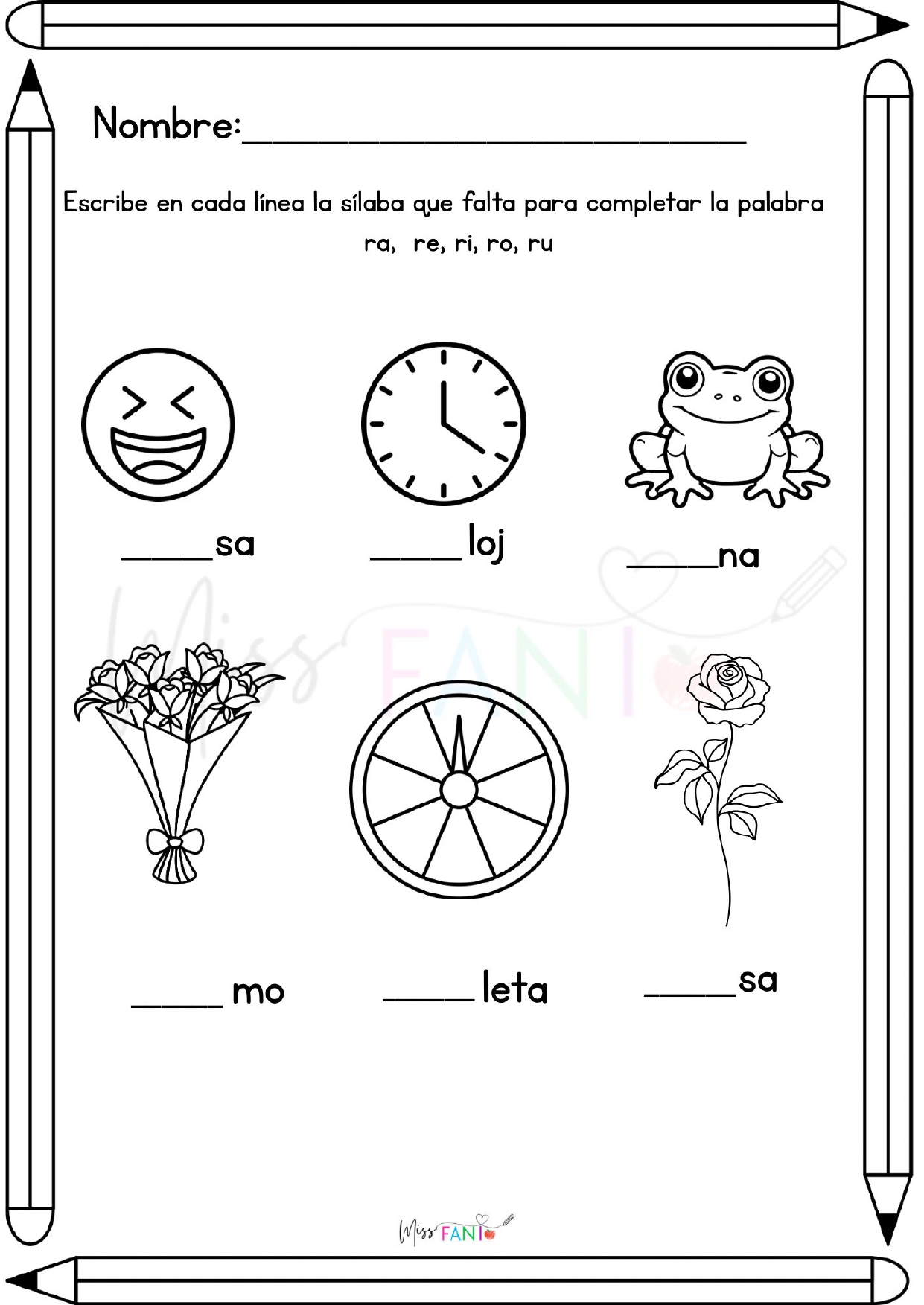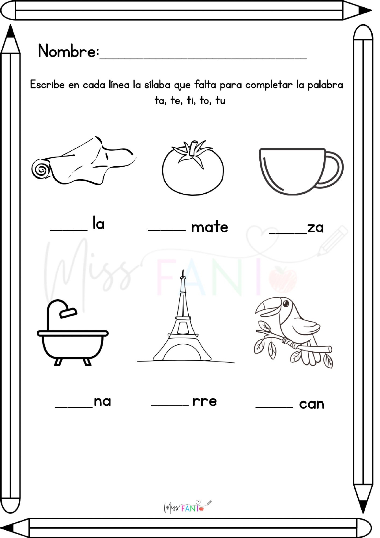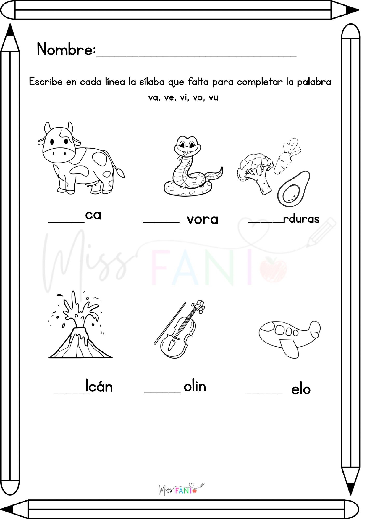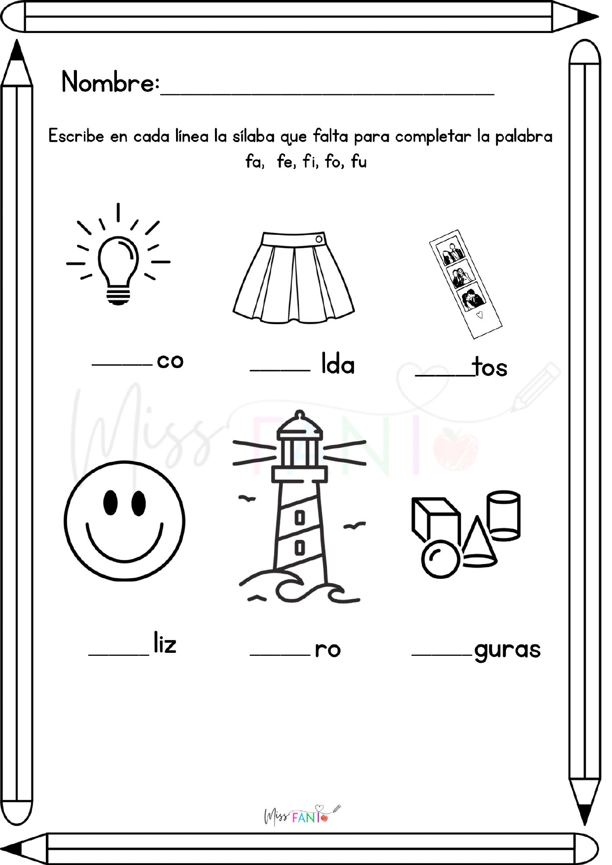 El dominio de las sílabas es una base fundamental en el aprendizaje de la lectura. Cuando los niños aprenden a identificar y combinar sílabas, desarrollan habilidades clave como la decodificación, el reconocimiento visual de palabras y la fluidez lectora. Estas fichas imprimibles ayudan a consolidar dichos procesos mediante actividades claras, estructuradas y visualmente atractivas.