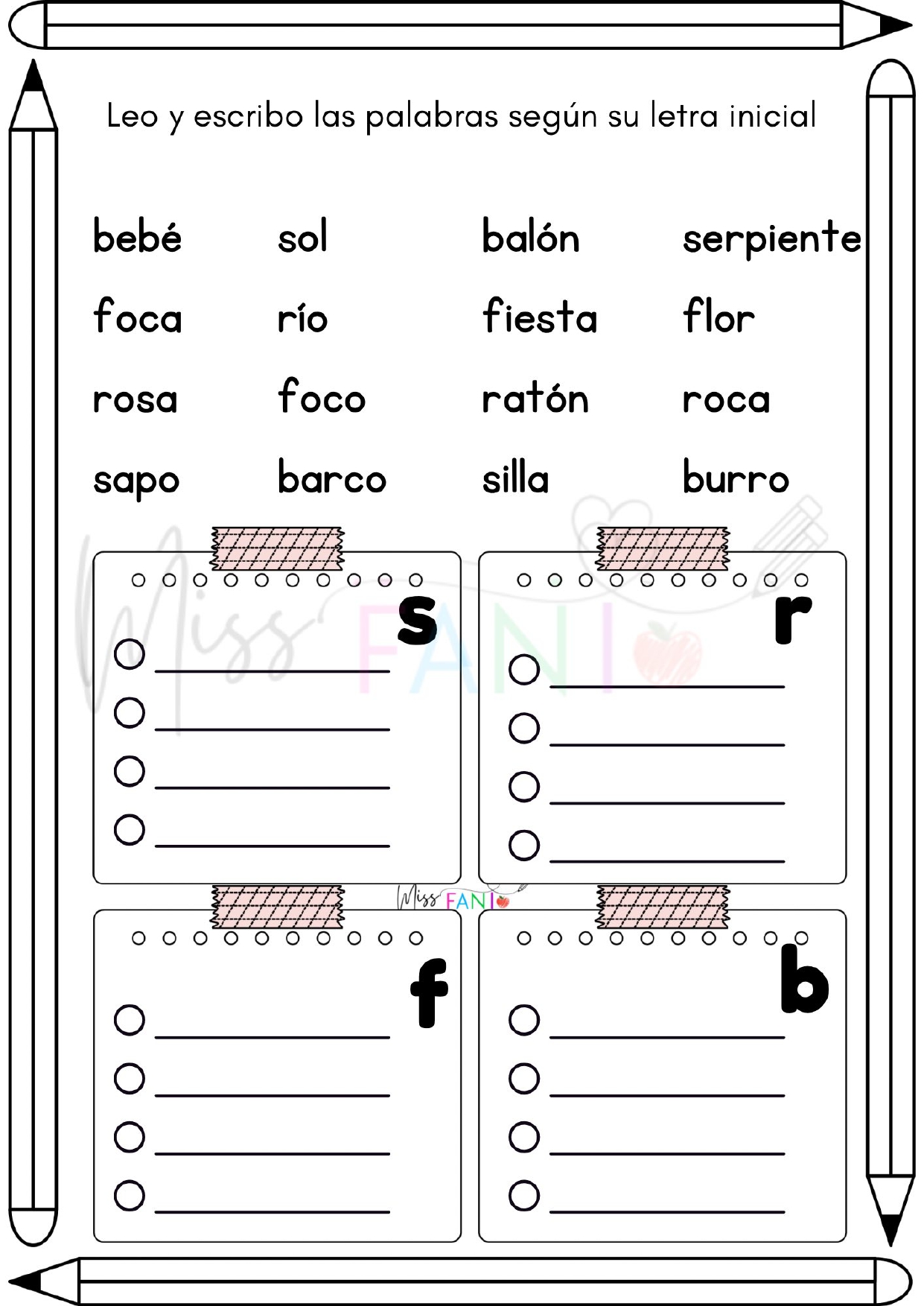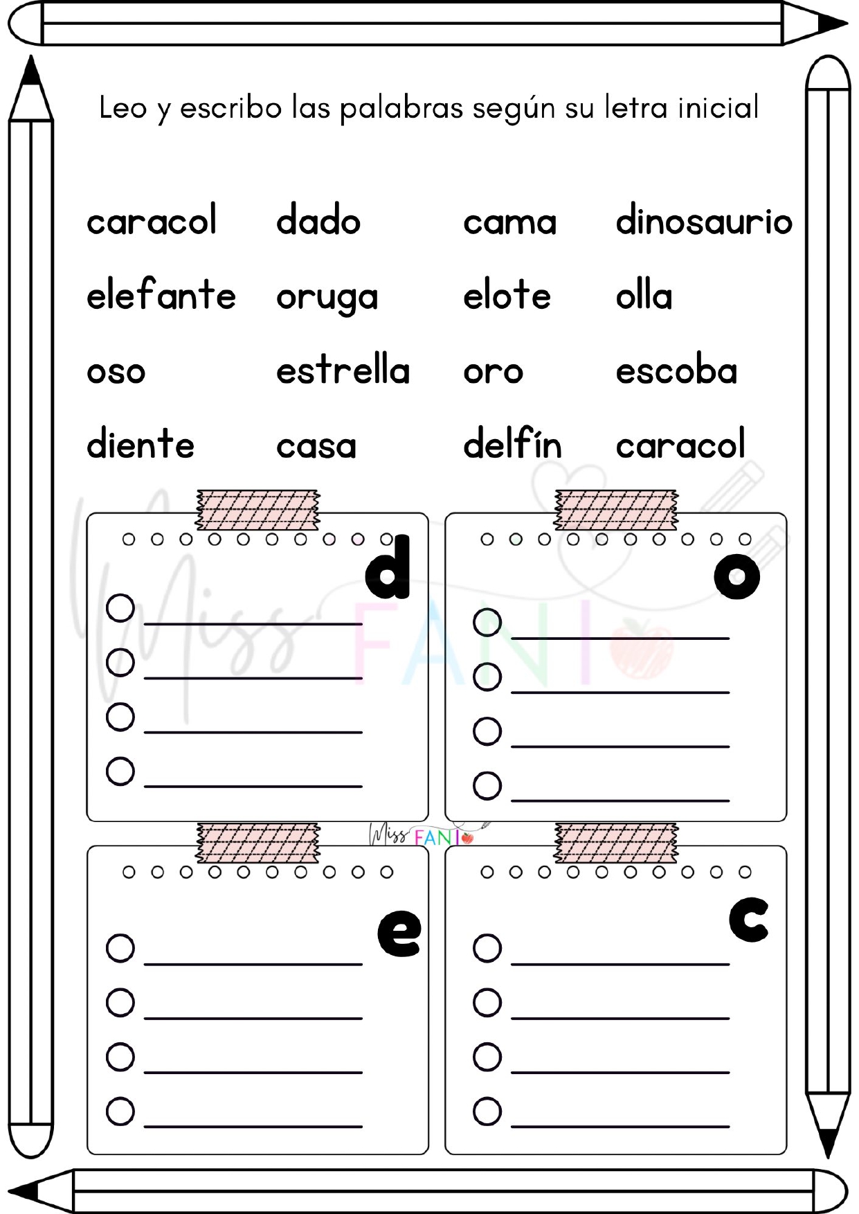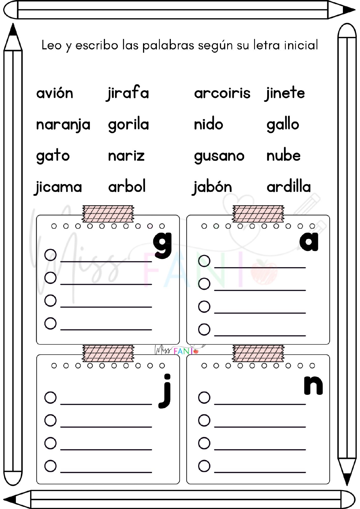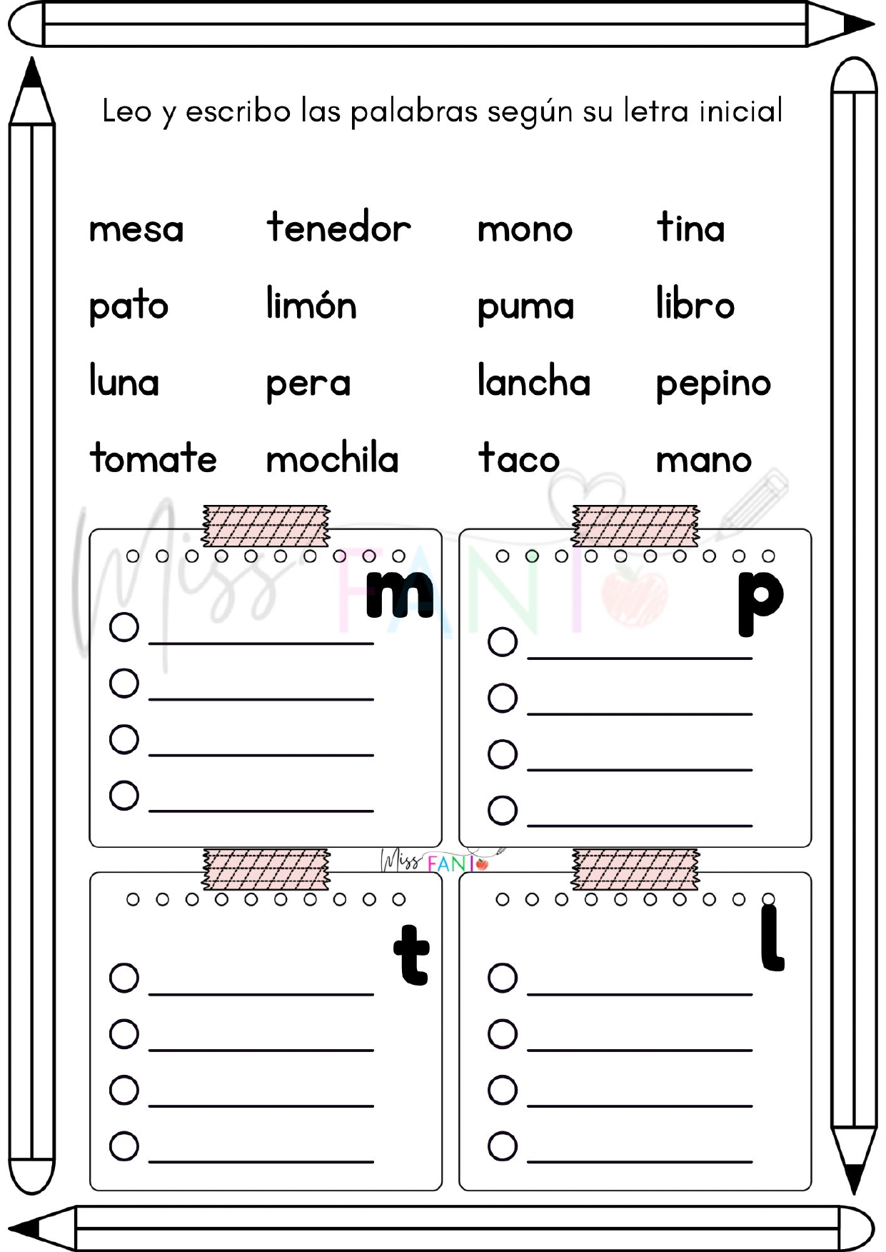 Estas fichas pueden combinarse con otros recursos visuales para reforzar el reconocimiento de letras y palabras desde los primeros niveles.