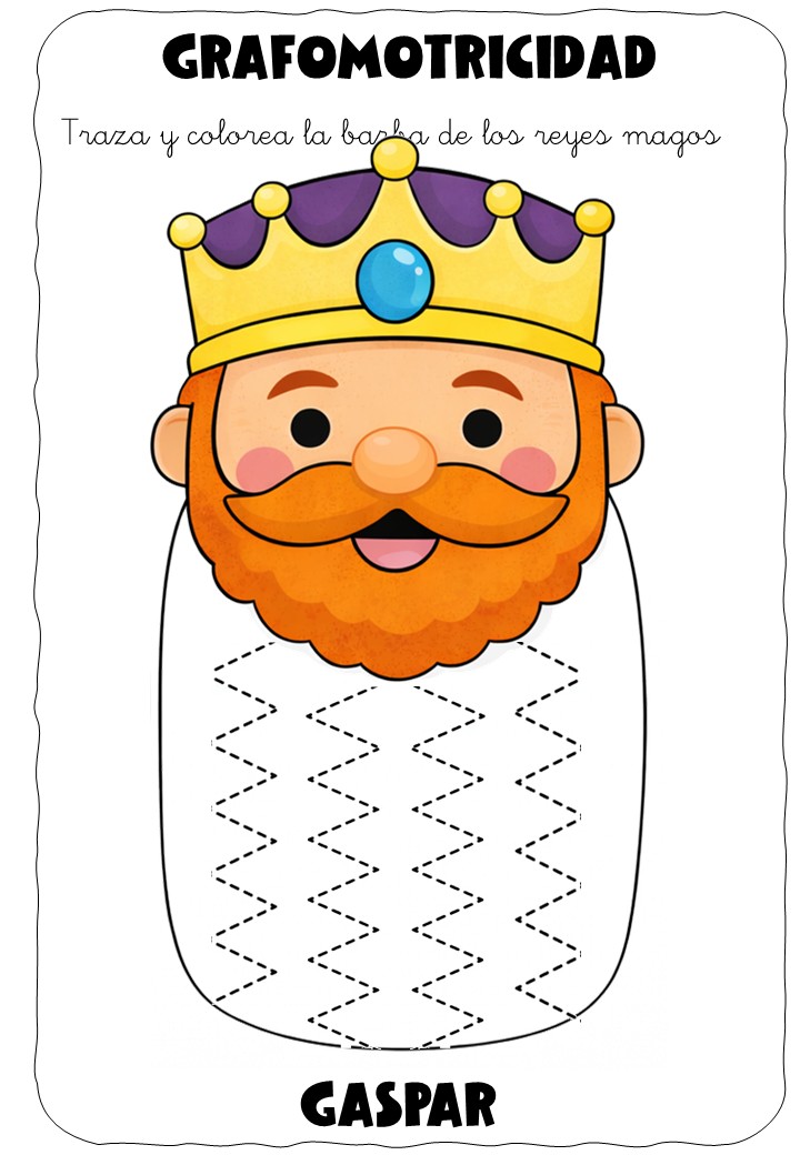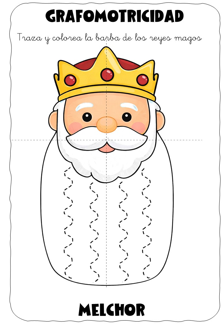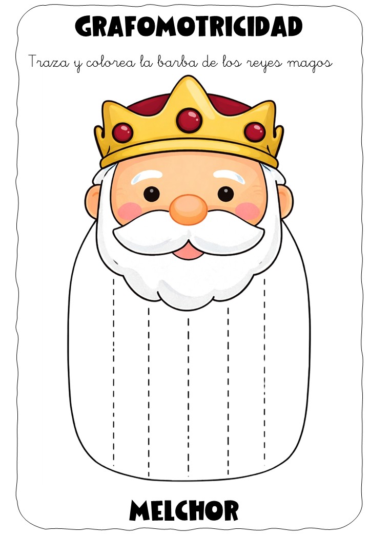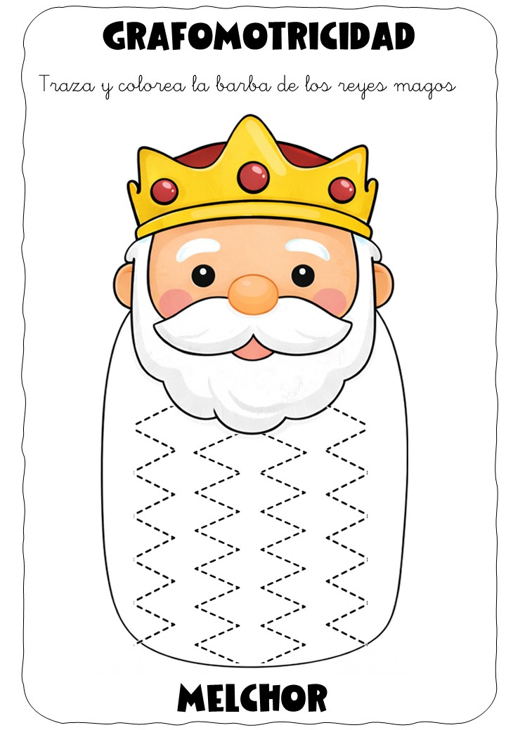 ✏️👑 Grafomotricidad: la barba de los Reyes Magos – Traza y colorea