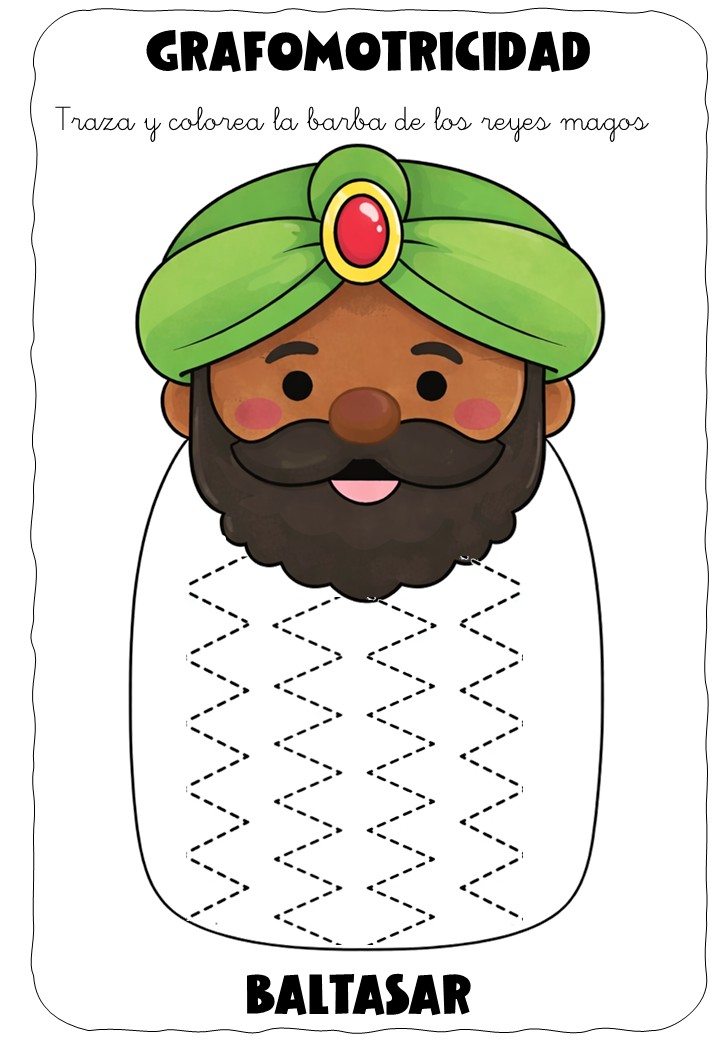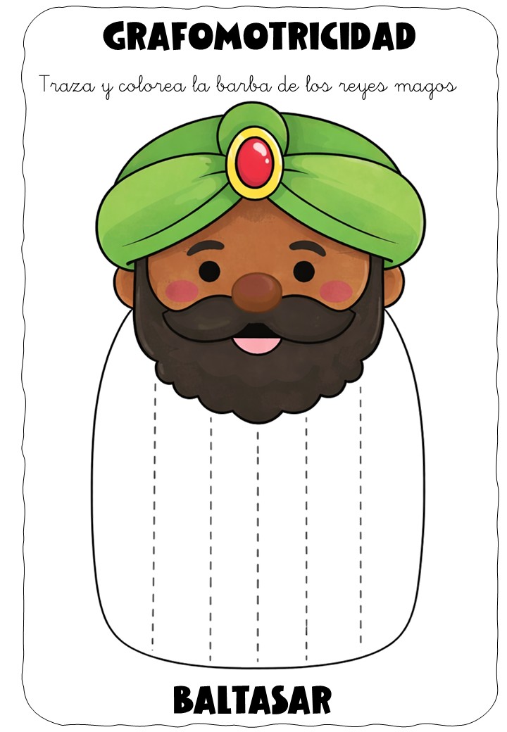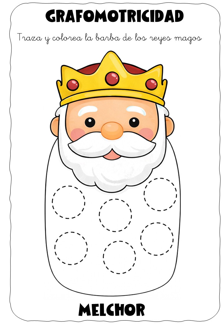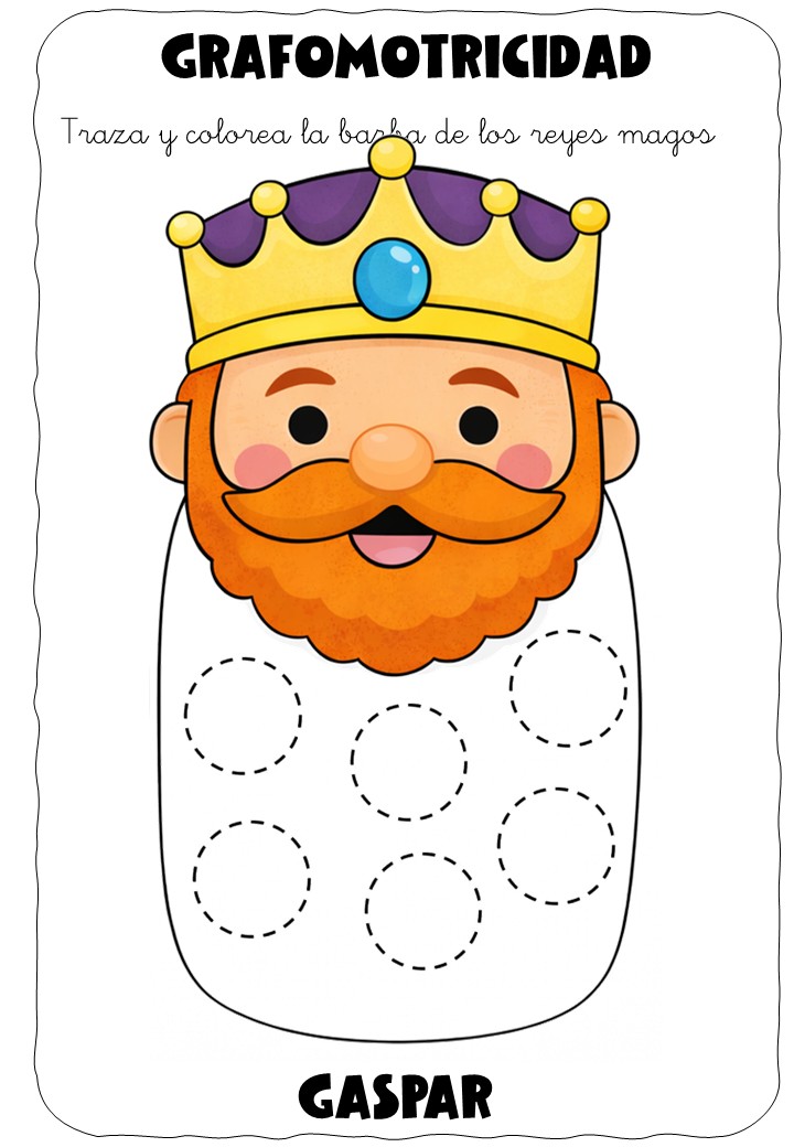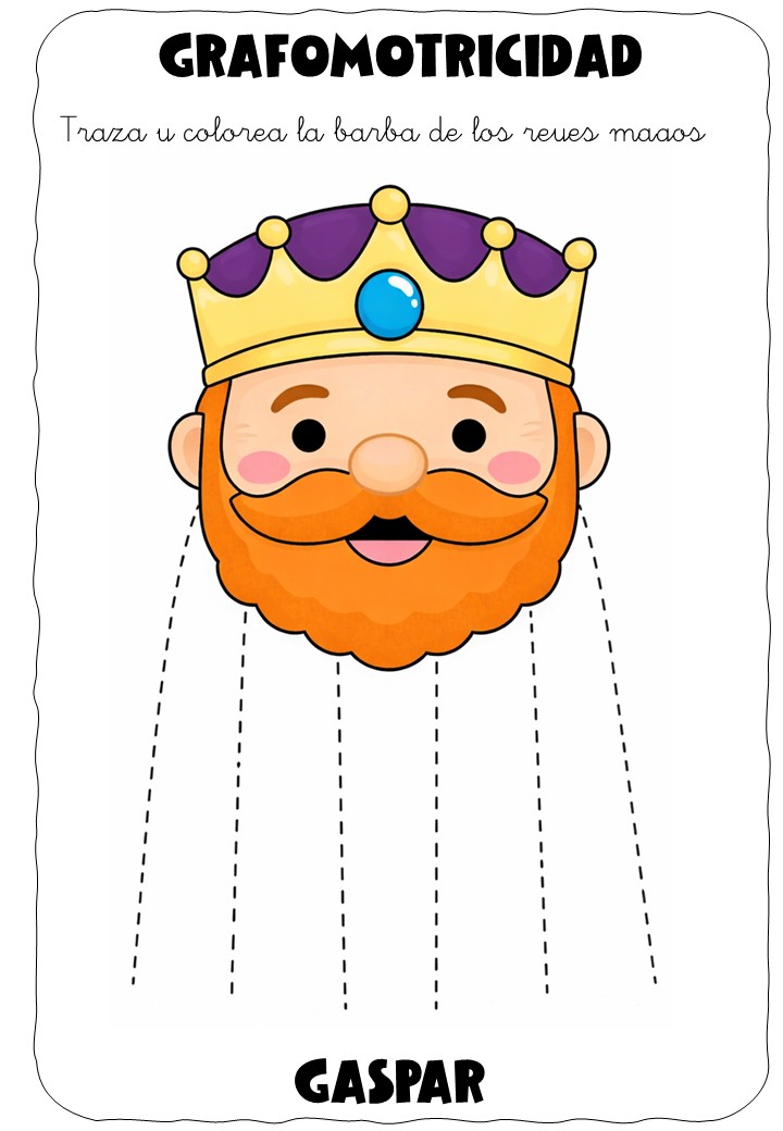 ✏️👑 Grafomotricidad: la barba de los Reyes Magos – Traza y colorea