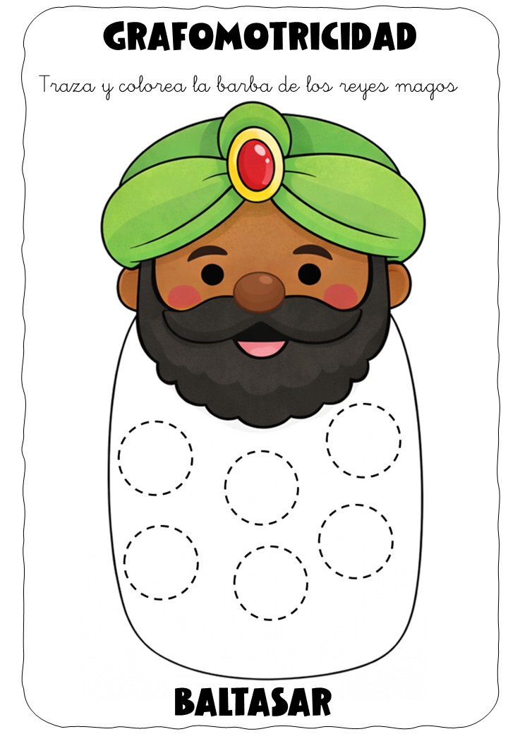 Actividades de trazado guiado en la barba de cada Rey Mago.