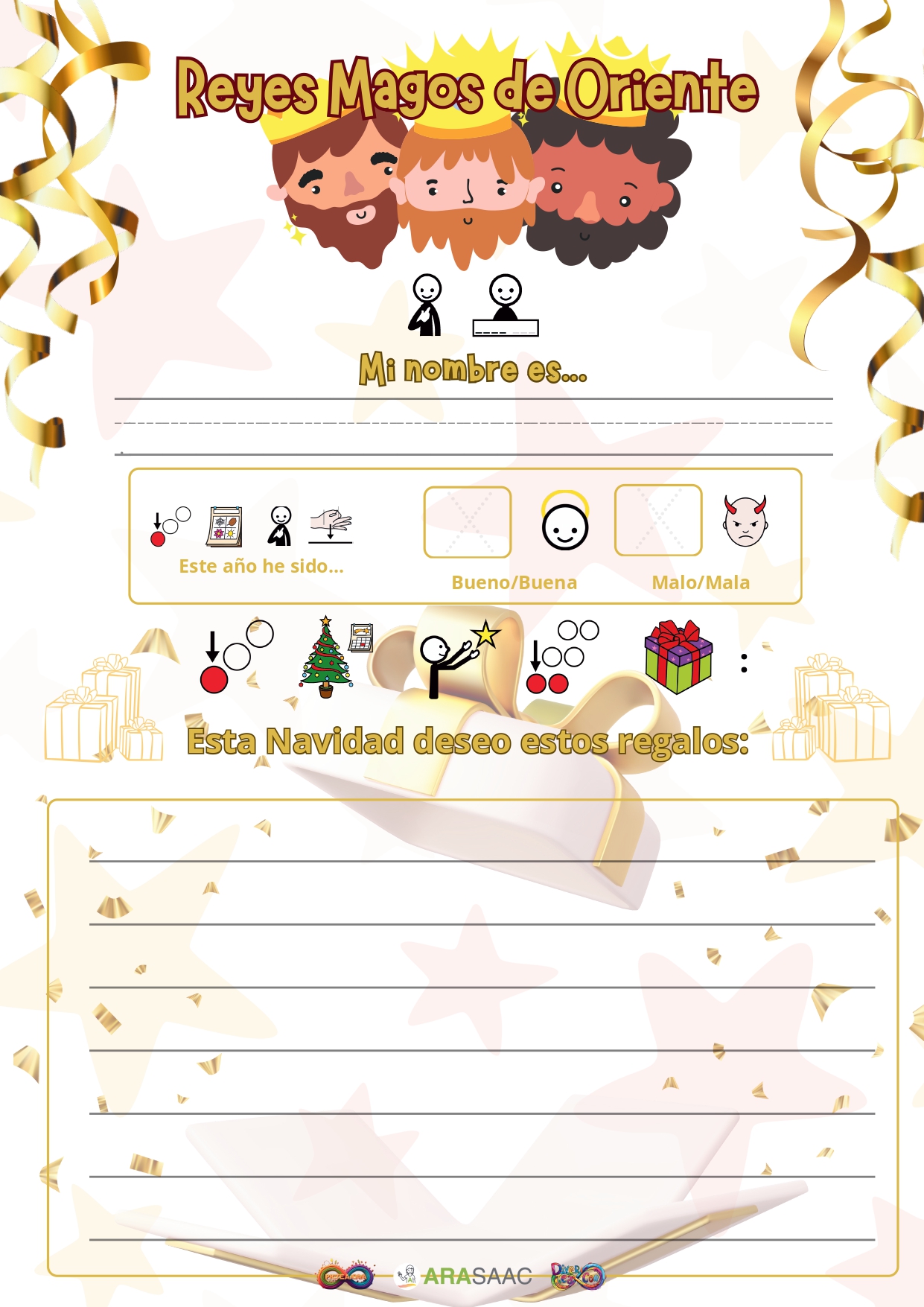 Carta a los Reyes Magos con pictogramas, adaptada y clara.