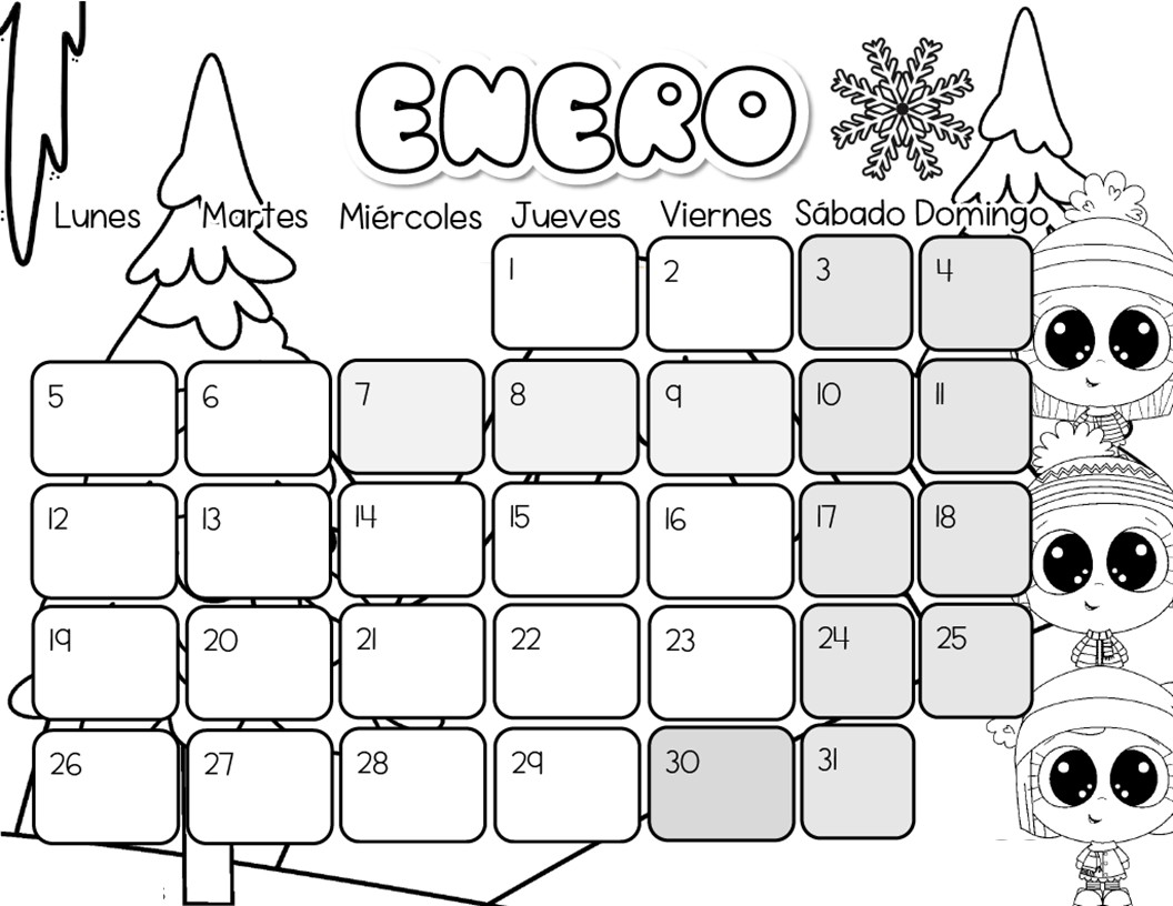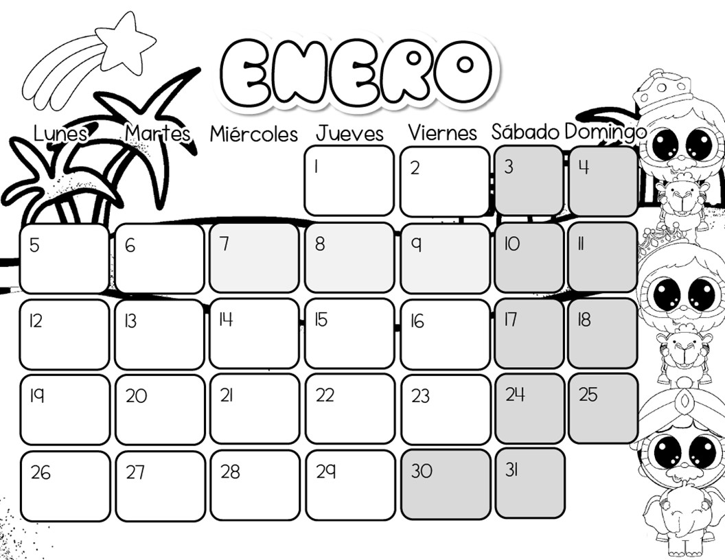 📅✏️ Calendario enero 2026 – Traza y colorea