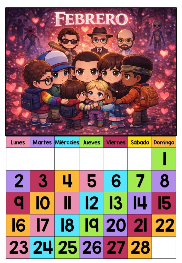 CALENDARIO 2026 STRANGER THINGS A TODO COLOR