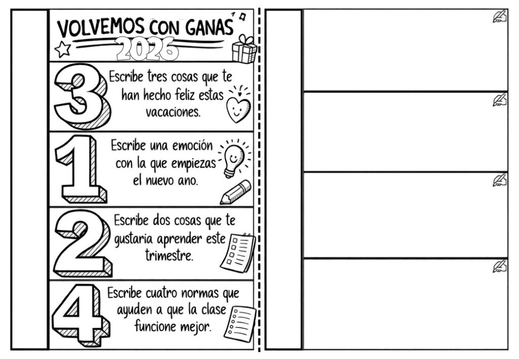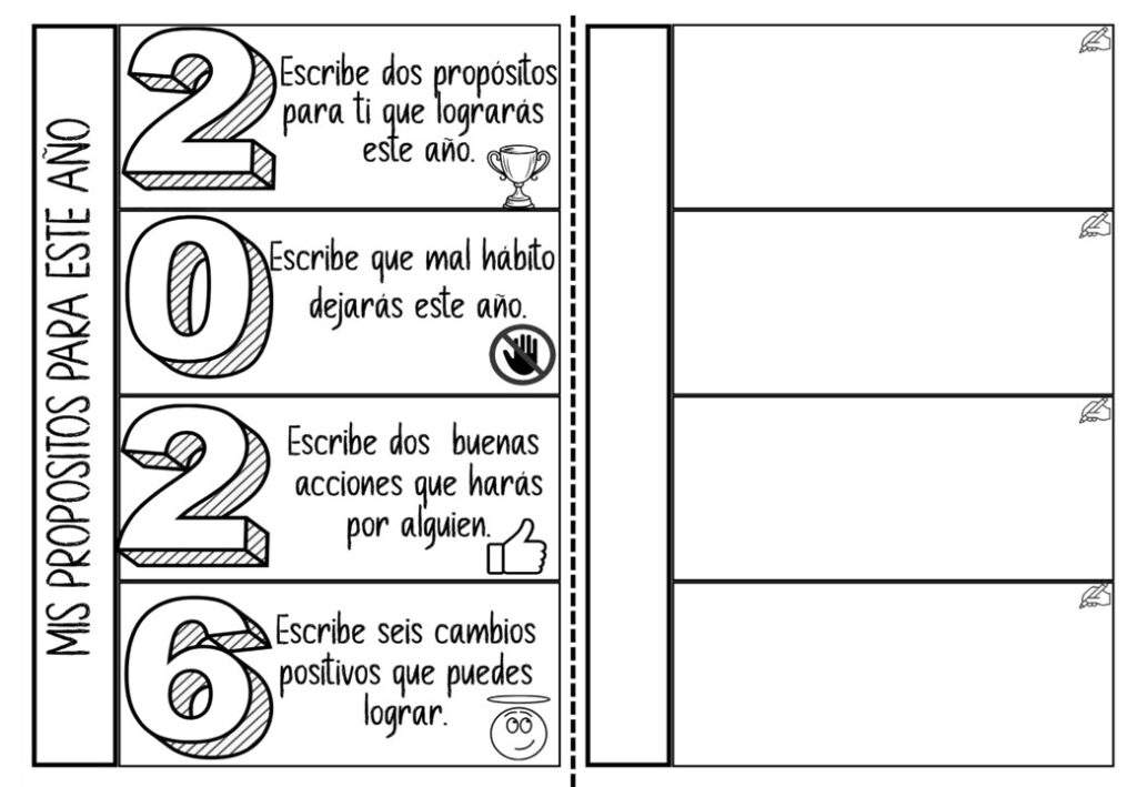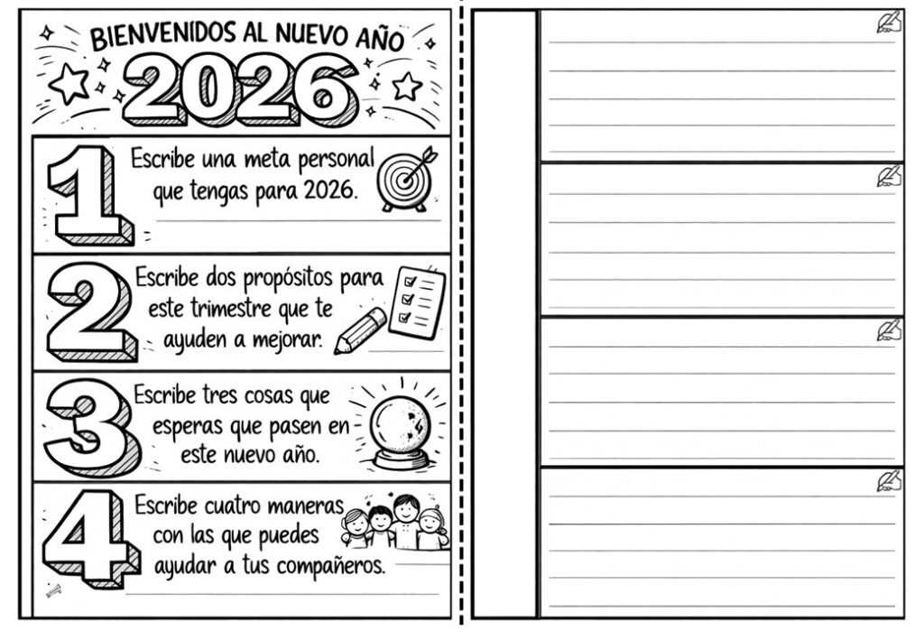 Una vez terminado, puede guardarse en el cuaderno, utilizarse como recordatorio de metas o incluso exponerse en el aula como símbolo del compromiso con el nuevo año.