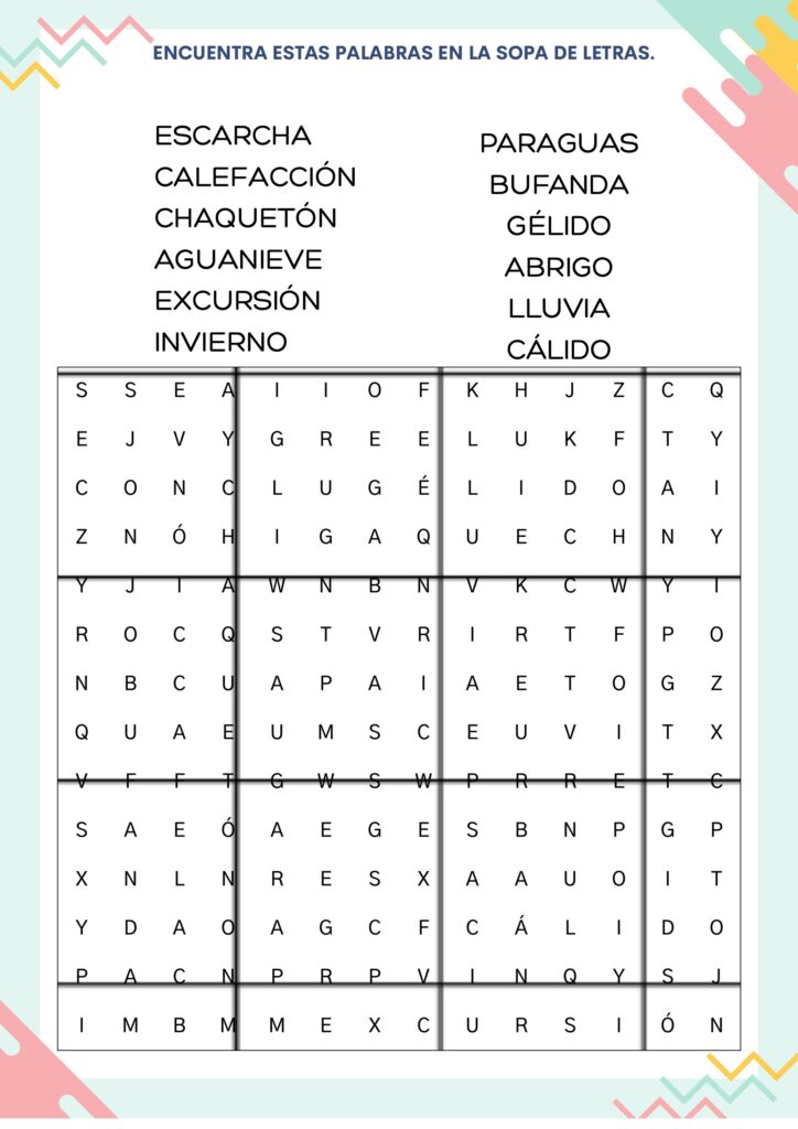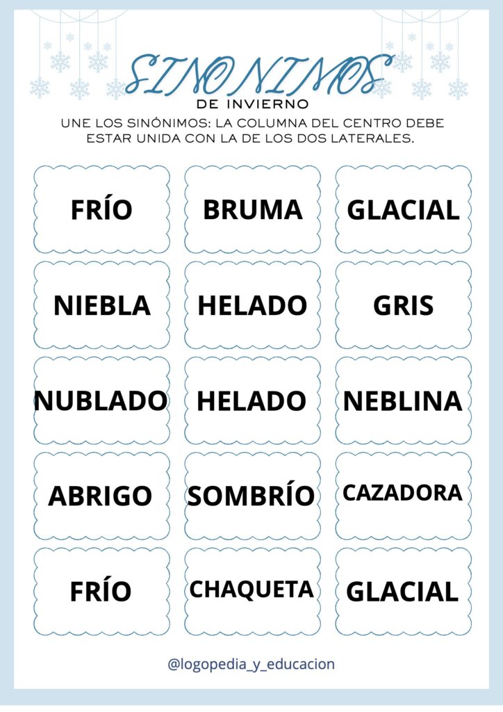 Fichas de sin贸nimos de invierno para ampliar l茅xico.