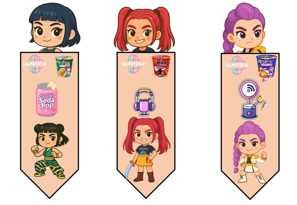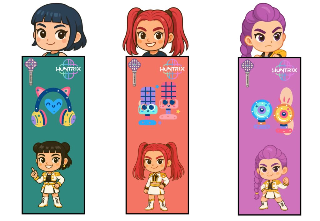 Marcapáginas ilustrados con las Guerreras del K-POP en diferentes poses y estilos.