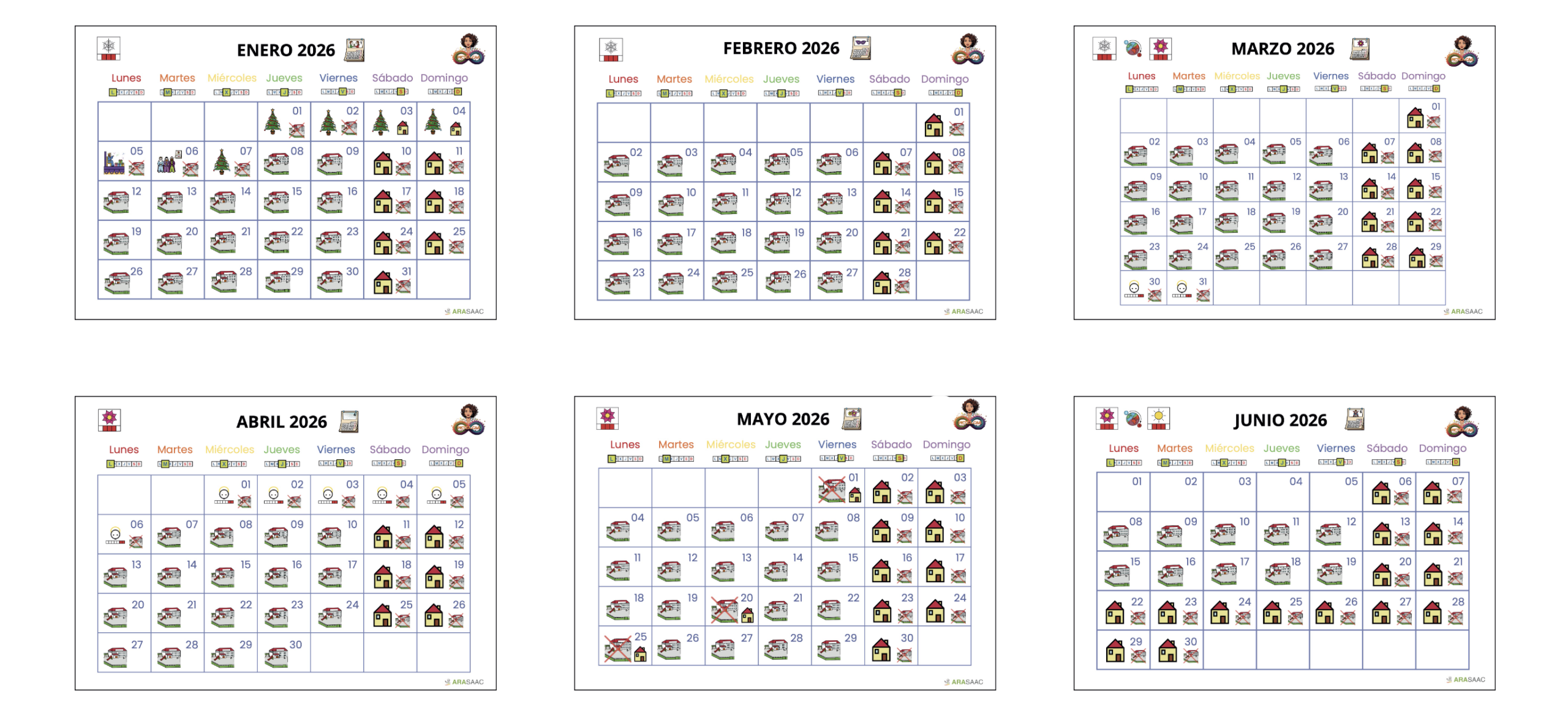 Calendario Pictogramas 2026 ideal aula NEAE
