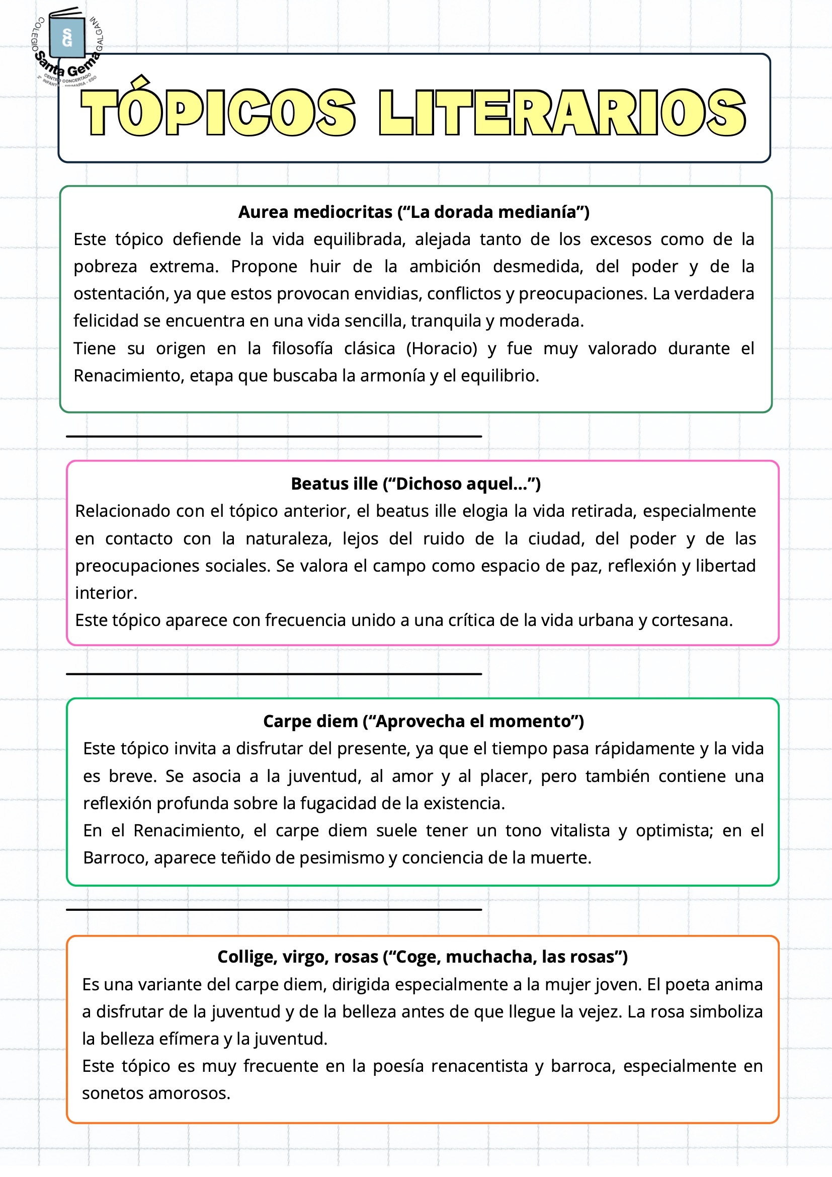 Los tópicos literarios, apuntes de lengua 3