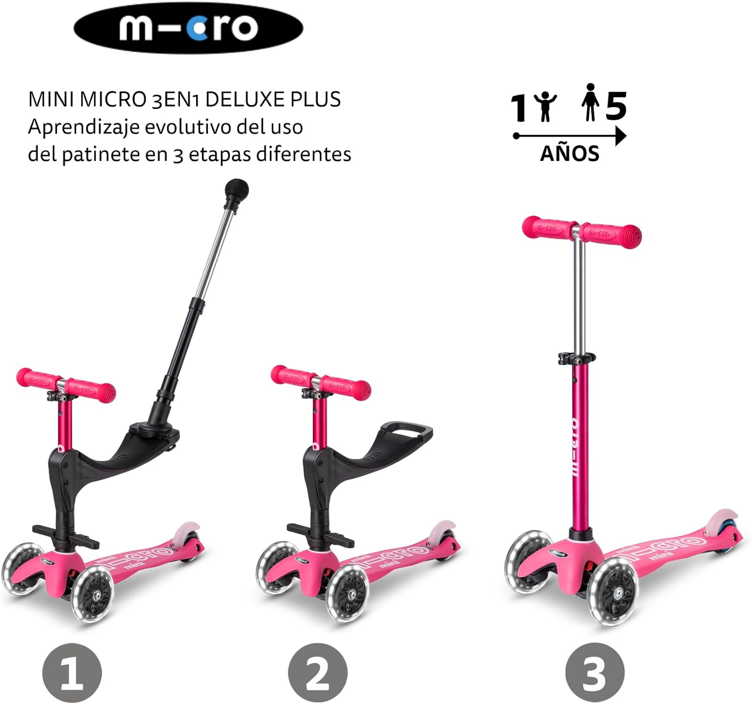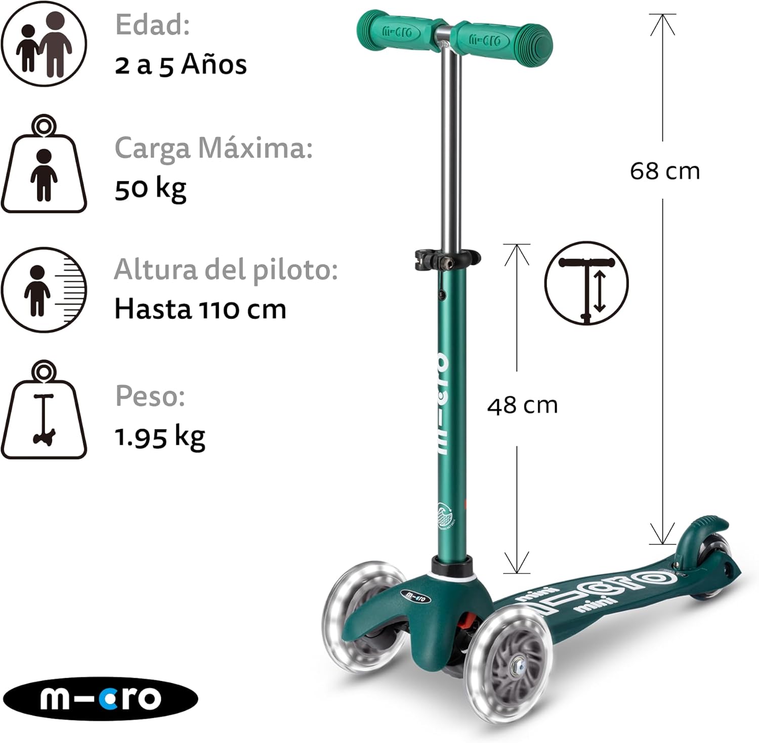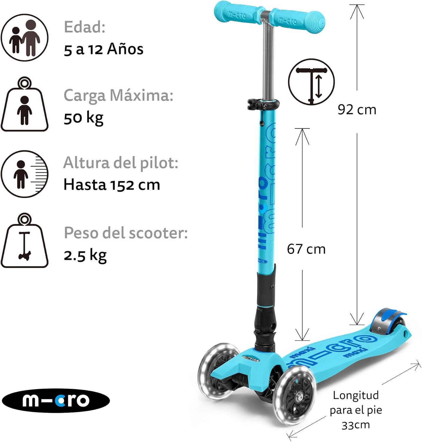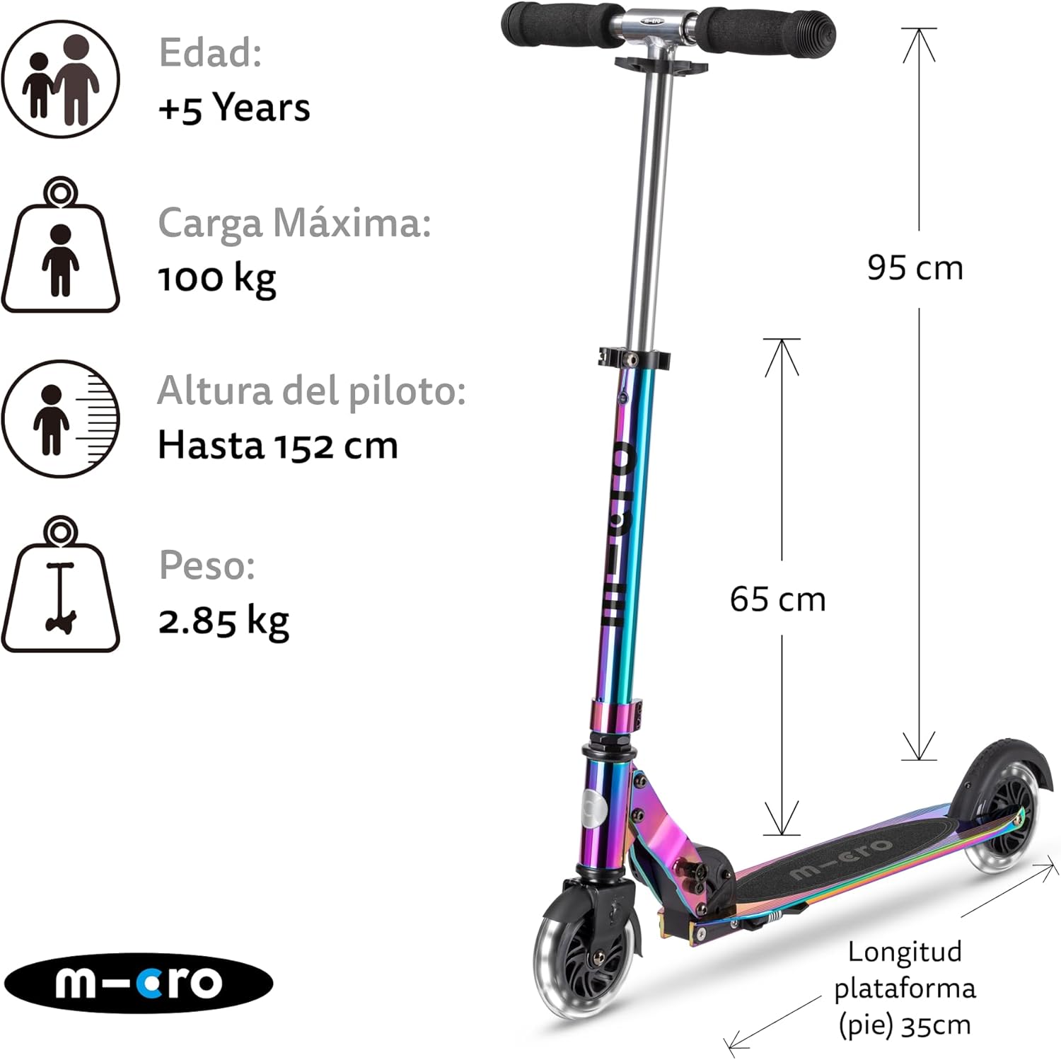 Además de las conocidas ruedas LED sin pilas, muchos modelos Micro incorporan materiales y acabados fosforescentes que mejoran la visibilidad del patinete en condiciones de poca luz. Esto hace que los niños sean más fáciles de ver al atardecer, en días nublados o en zonas poco iluminadas, aumentando la seguridad durante los desplazamientos.