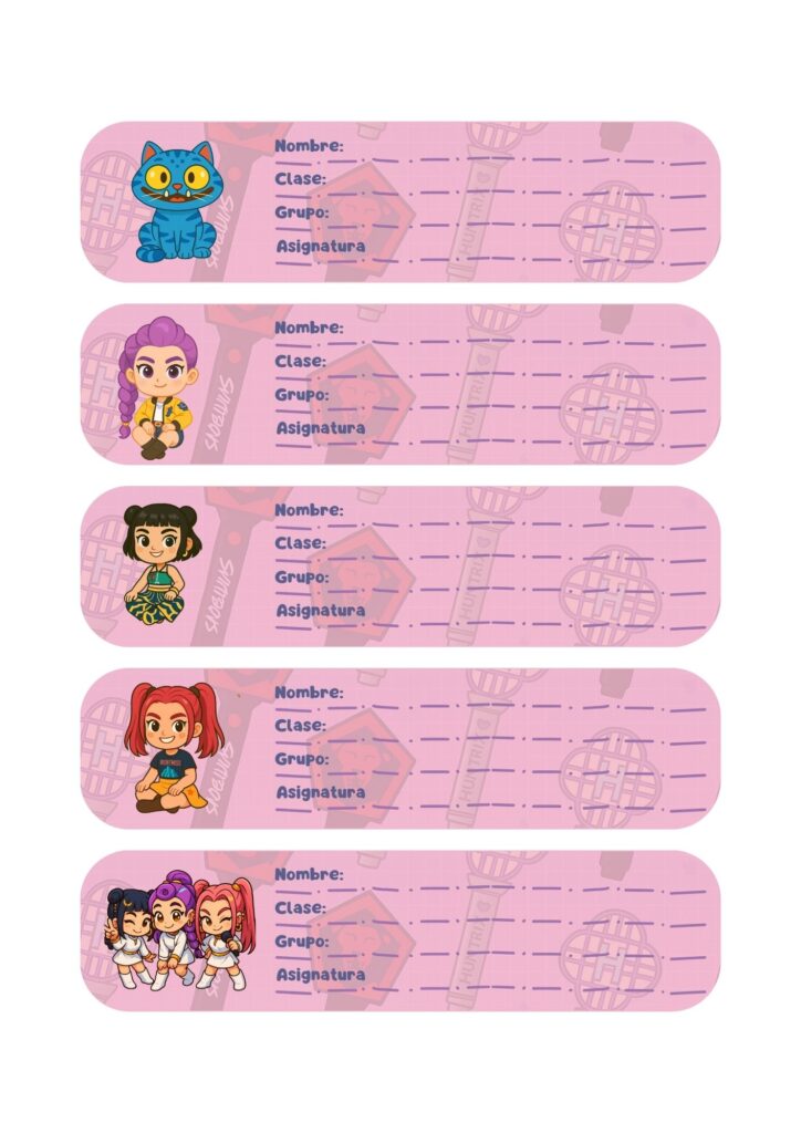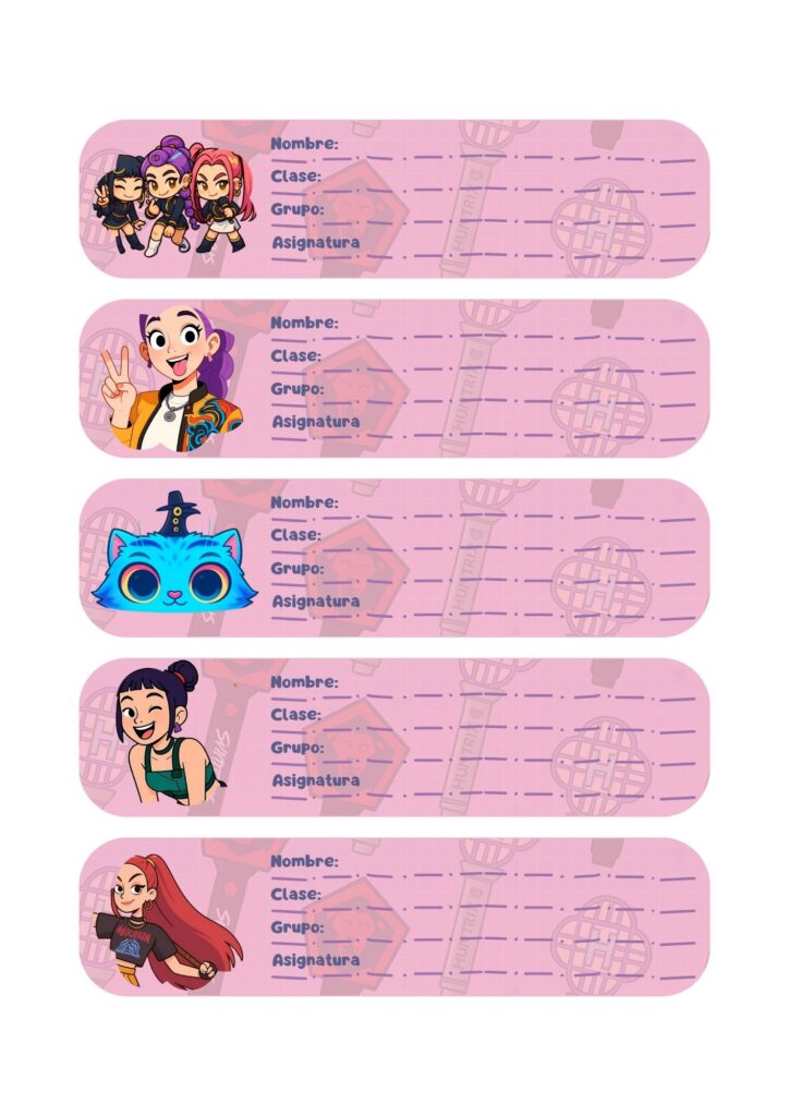 Los pequeños detalles también hacen del aula un lugar especial. Por eso, hoy quiero compartir unas etiquetas para poner el nombre, diseñadas con un estilo bonito y actual, protagonizadas por las Guerreras K-Pop, uno de los personajes que más ilusión despierta entre el alumnado.