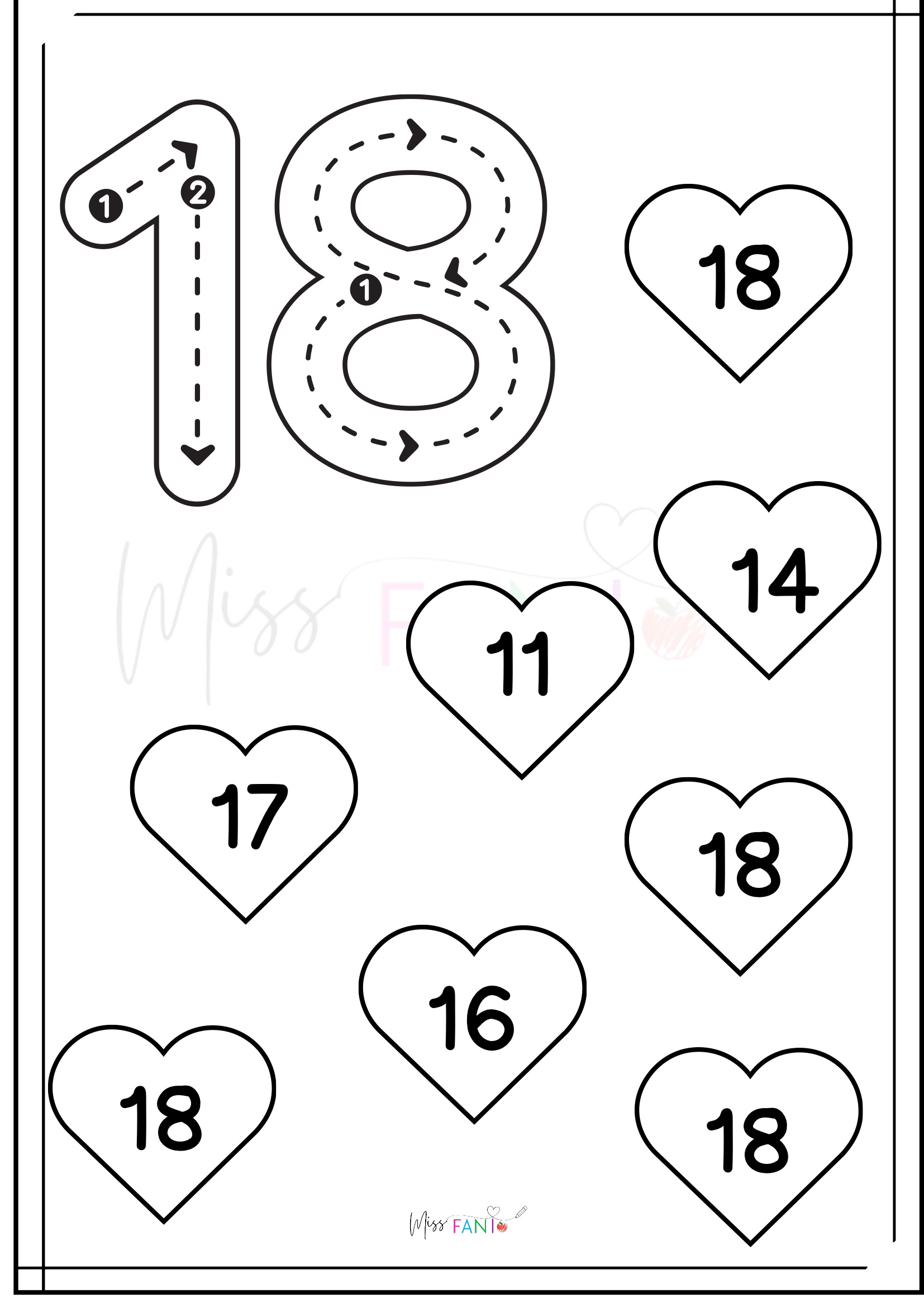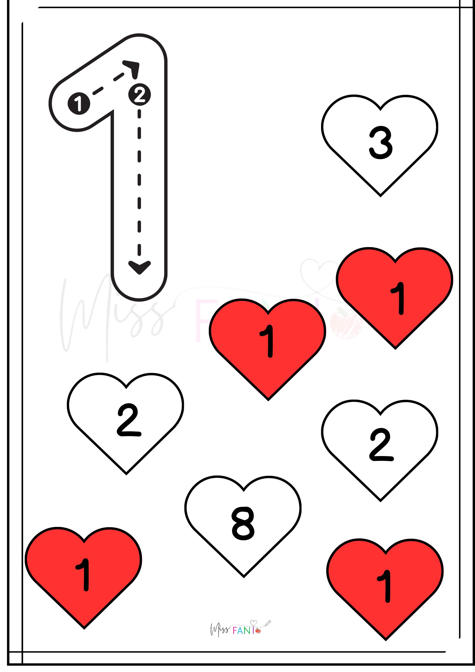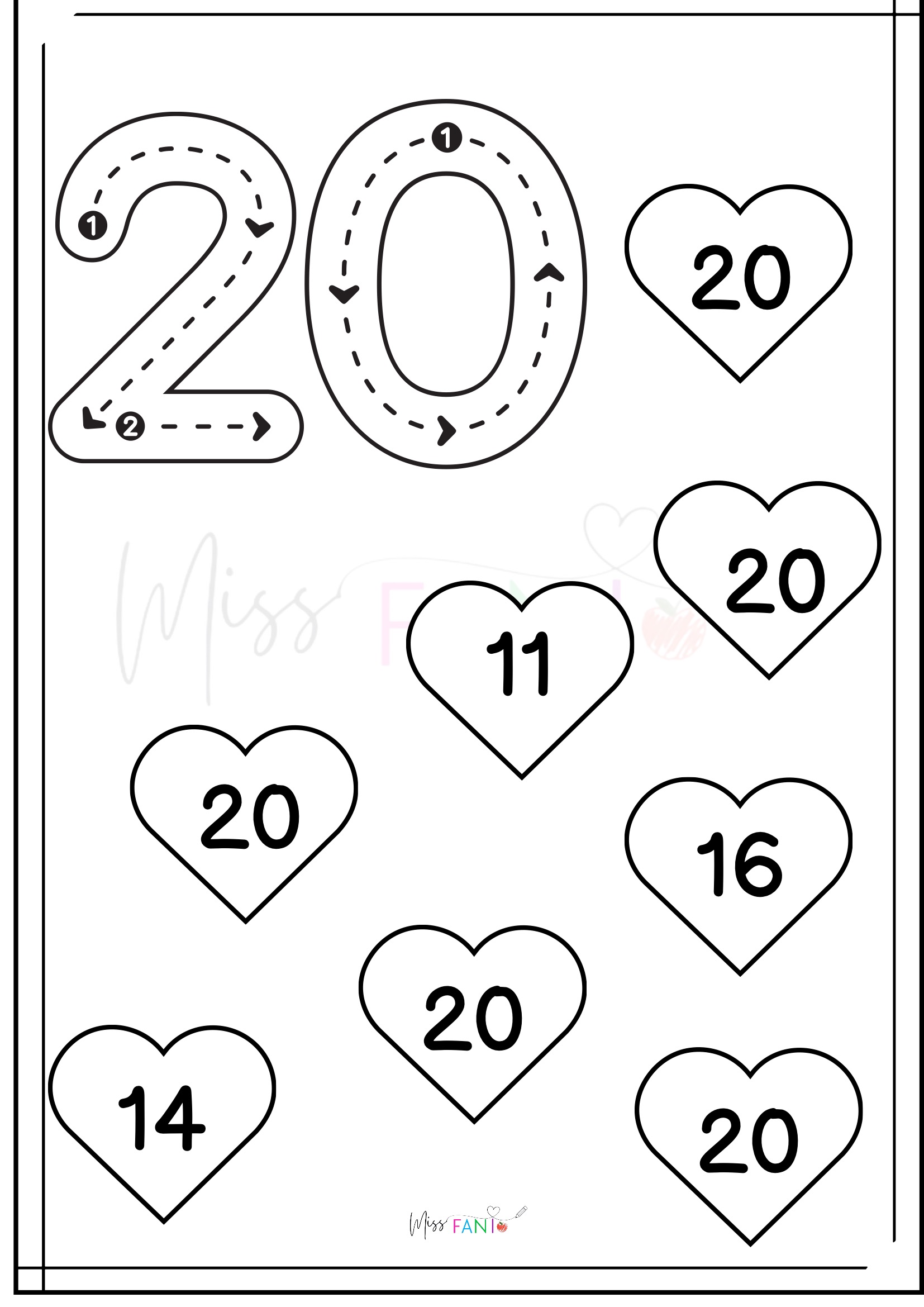 ❤️ Especial San Valentín: Motricidad de números del 1 al 20