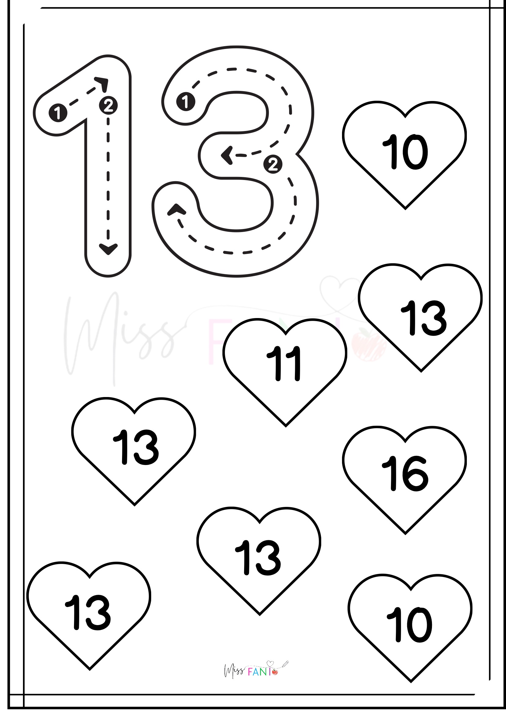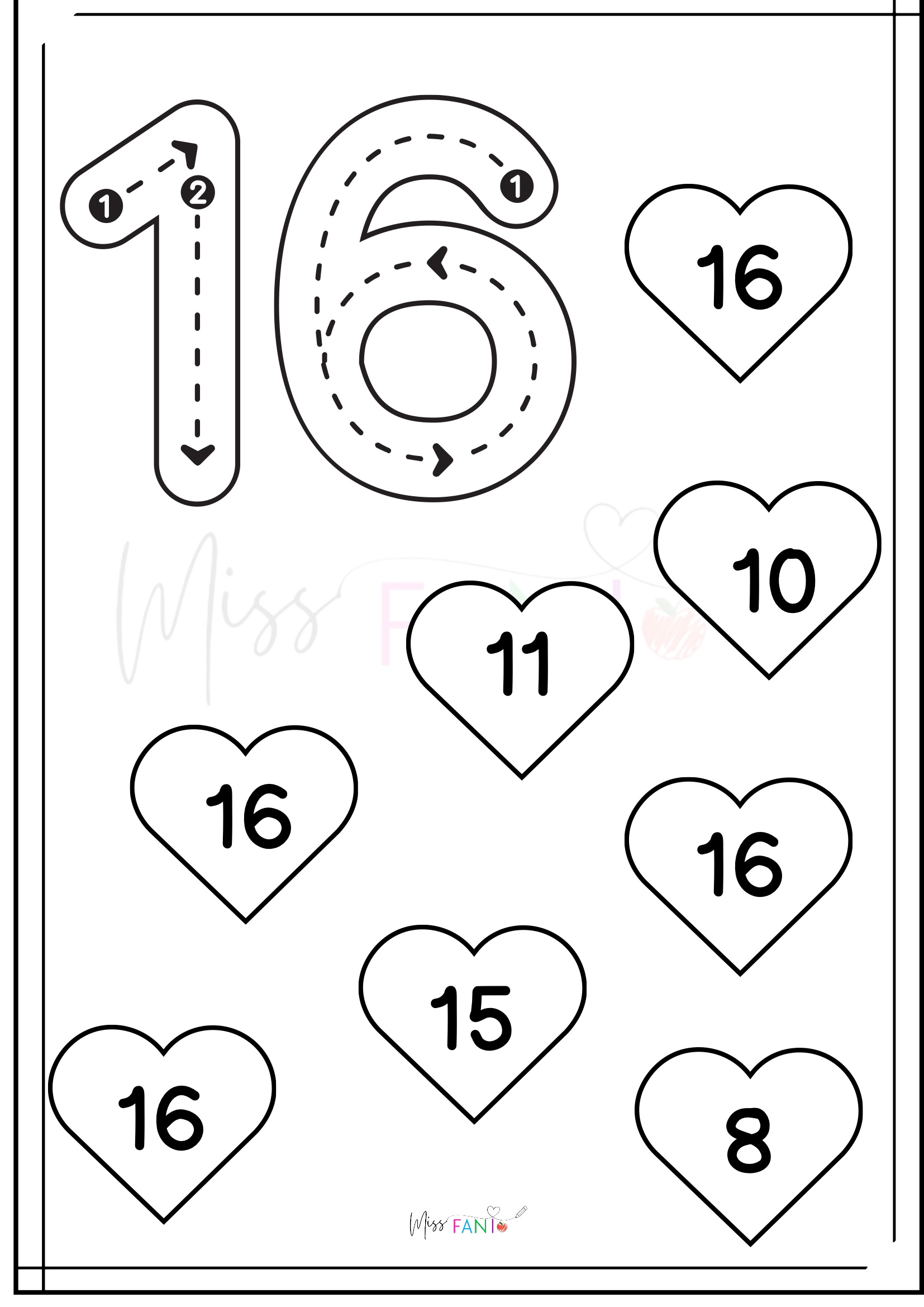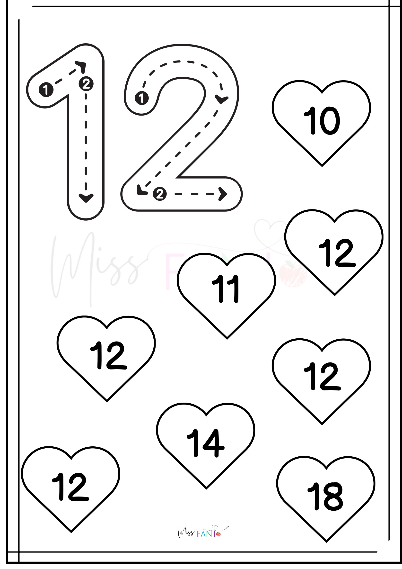 ❤️ Especial San Valentín: Motricidad de números del 1 al 20