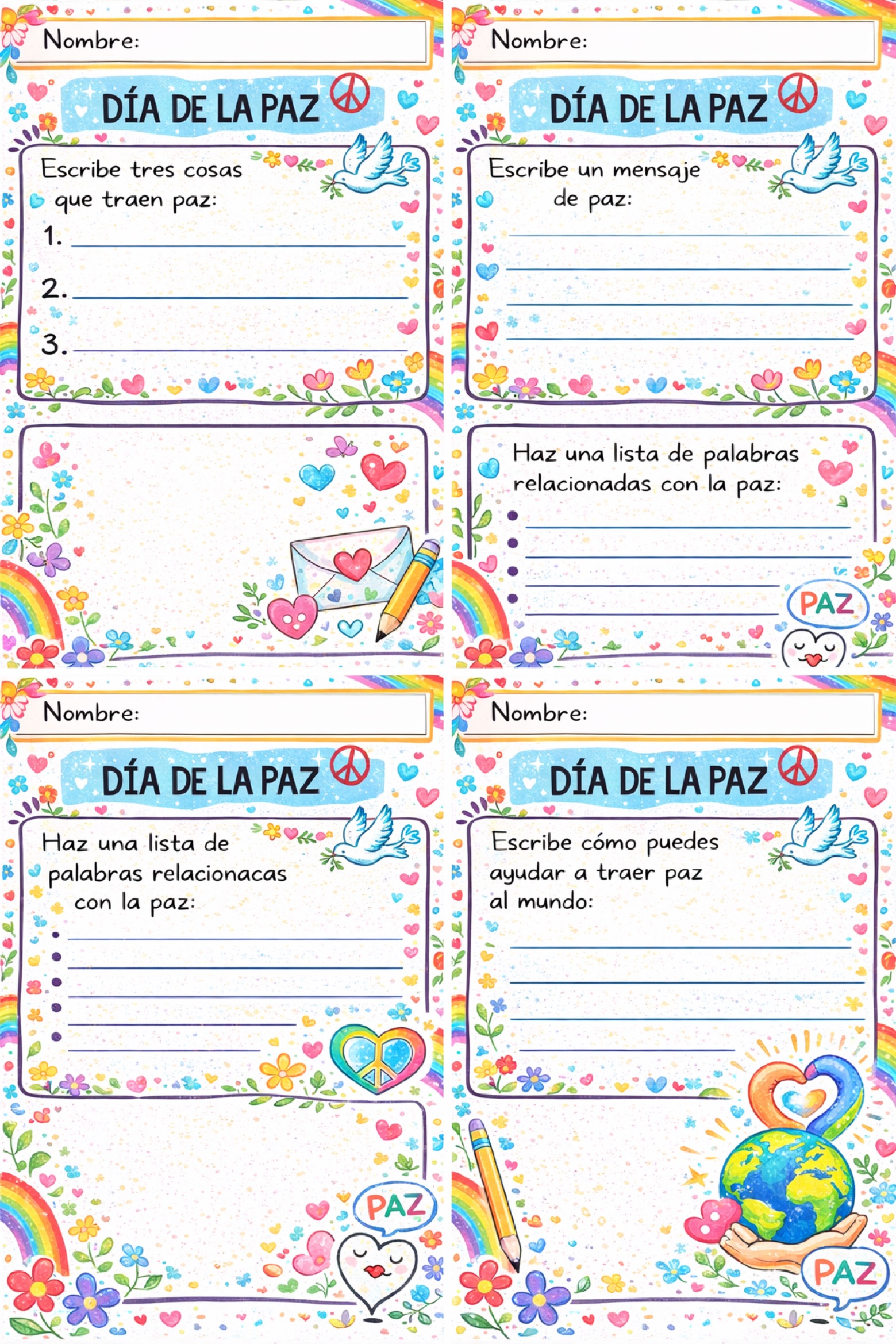 Estas fichas pueden emplearse como actividad central para conmemorar el Día de la Paz, como trabajo individual, en pequeños grupos o dentro de un proyecto de aula. Son especialmente adecuadas para reforzar la educación emocional, promover la convivencia escolar y generar espacios de diálogo y reflexión.