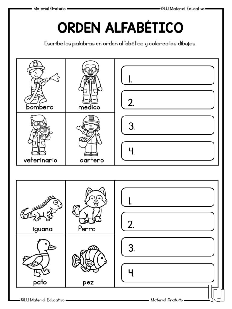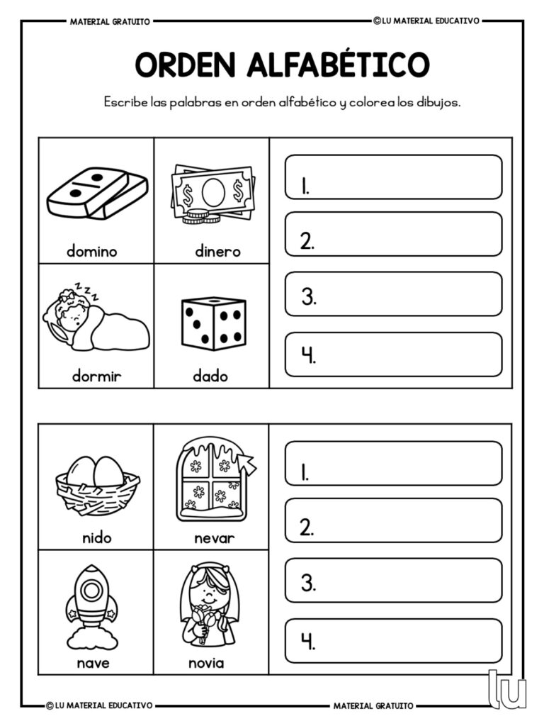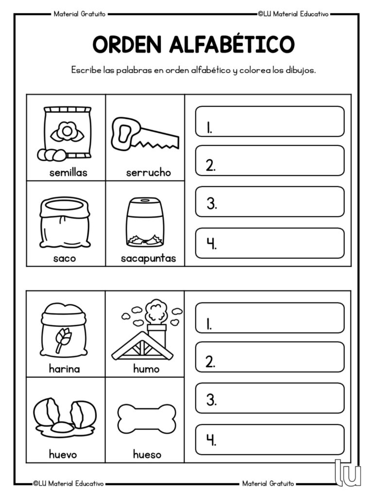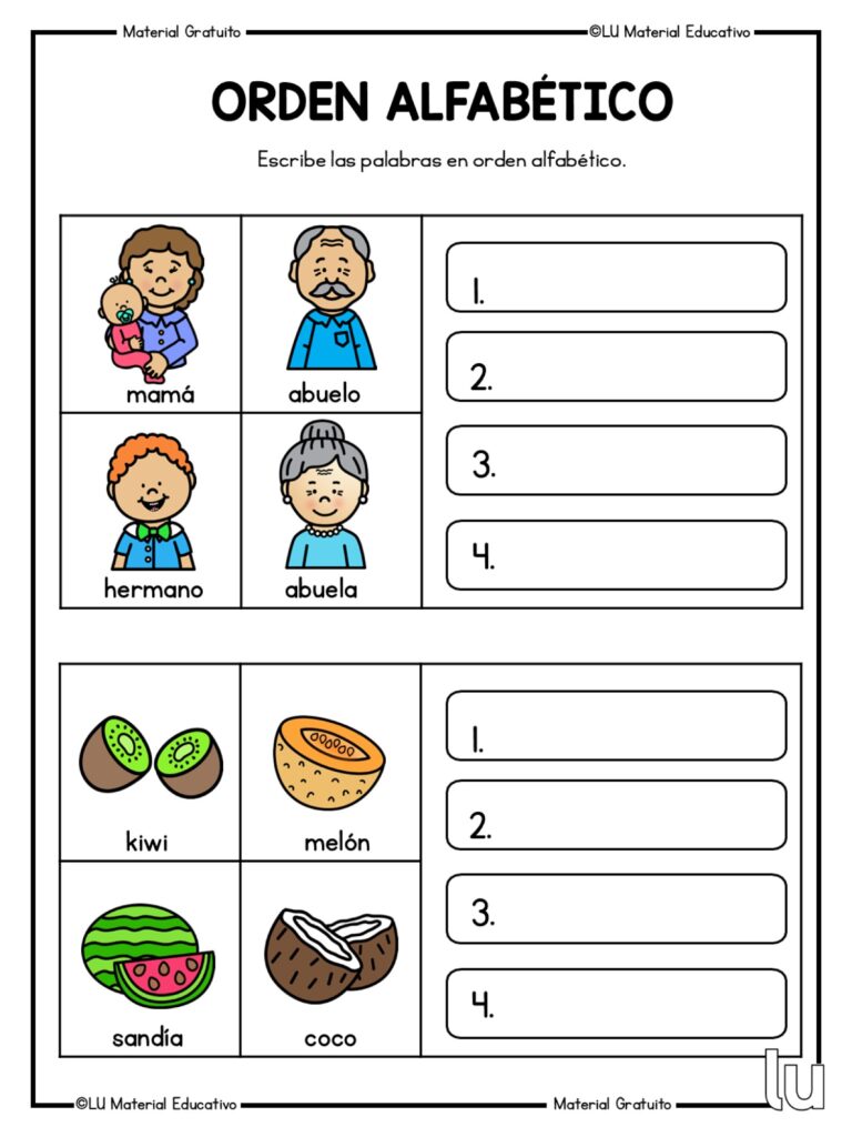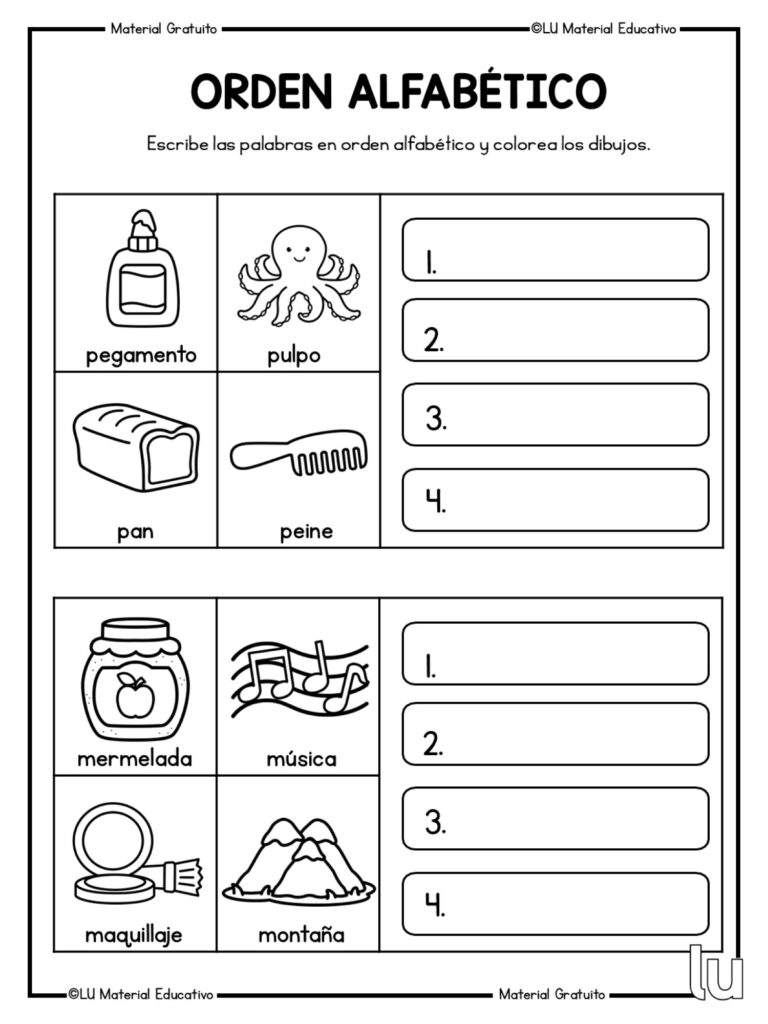Trabajar el orden alfab茅tico es fundamental en las primeras etapas del aprendizaje de la lectoescritura, ya que ayuda al alumnado a organizar palabras, mejorar el vocabulario y adquirir una base s贸lida para el uso del diccionario. Estas fichas permiten practicar el orden de las palabras de forma visual, clara y progresiva, favoreciendo la atenci贸n y la comprensi贸n del lenguaje escrito.
