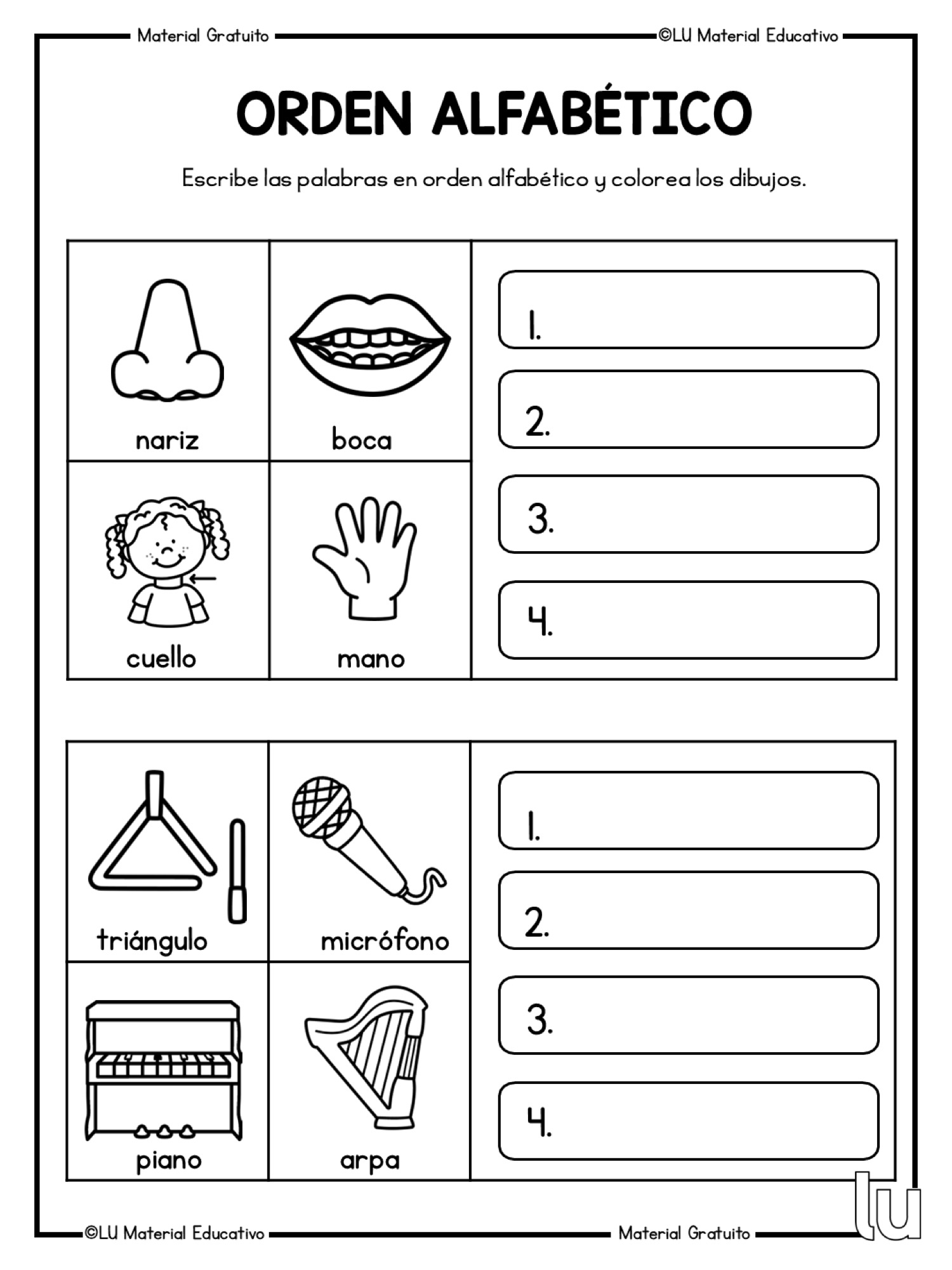 Fichas para trabajar el orden alfabético 10