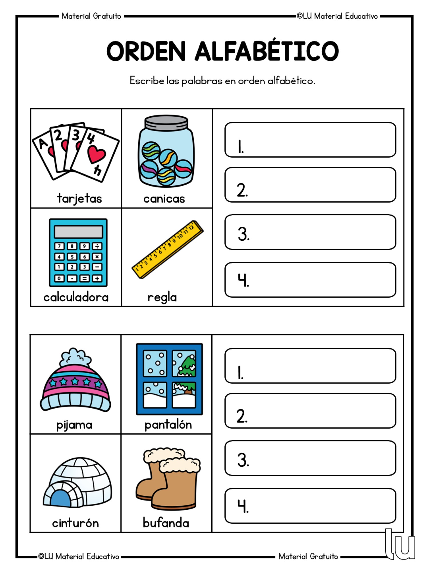 Fichas para trabajar el orden alfabético