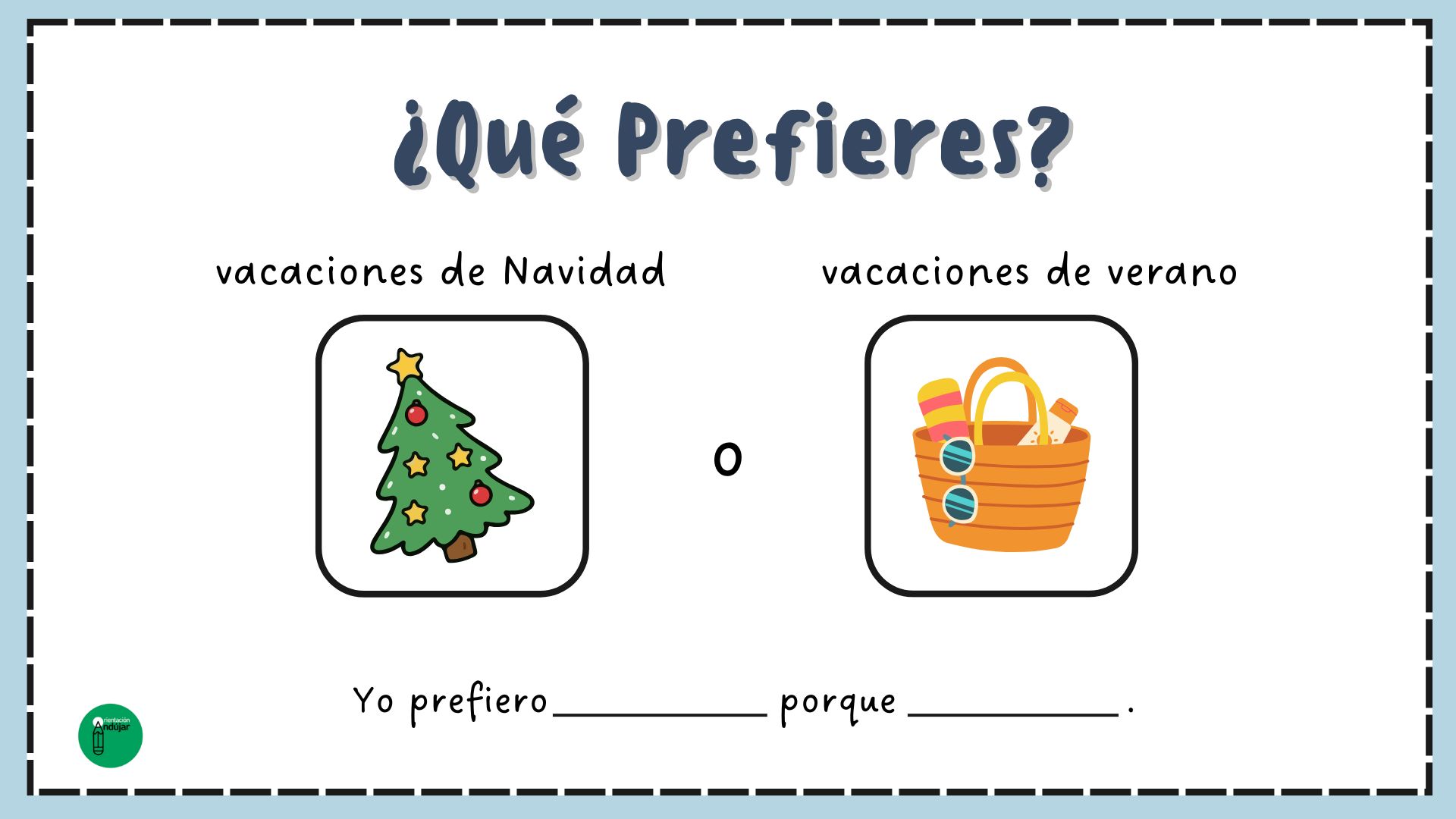 Fomentar la expresión oral en el aula puede ser todo un reto, especialmente cuando trabajamos con alumnado que está aprendiendo español o presenta necesidades educativas especiales. Por eso, hoy compartimos un recurso sencillo, motivador y muy efectivo: la dinámica “¿Qué prefieres?”, adaptada a la temática de invierno. Una actividad ideal para generar conversación, favorecer la toma de decisiones y dar voz a todos los alumnos, independientemente de su nivel de lenguaje.