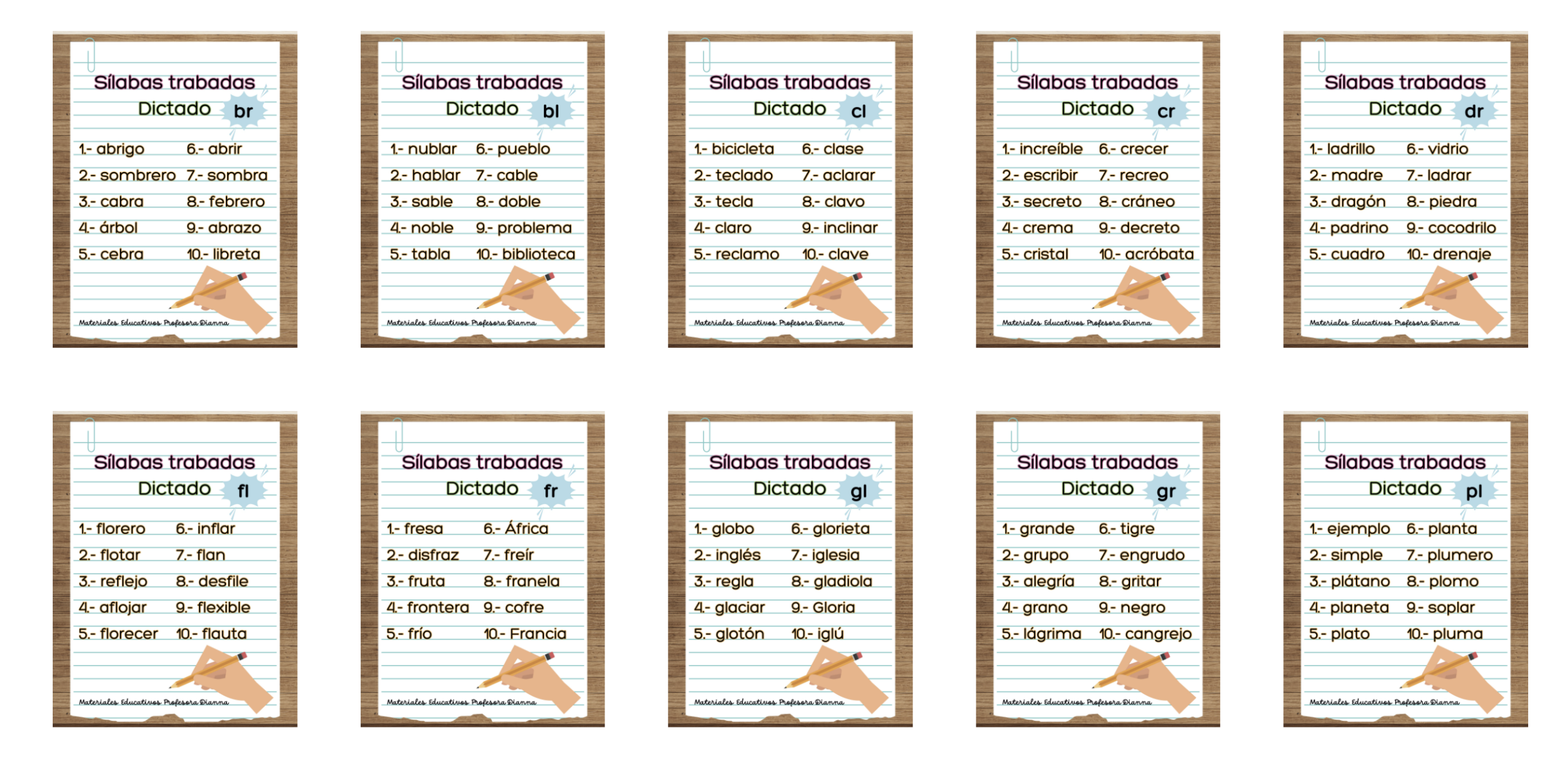 Dictados sencillos de palabras con sílabas trabadas Publicado por orientacionandujar el 21 enero, 2026