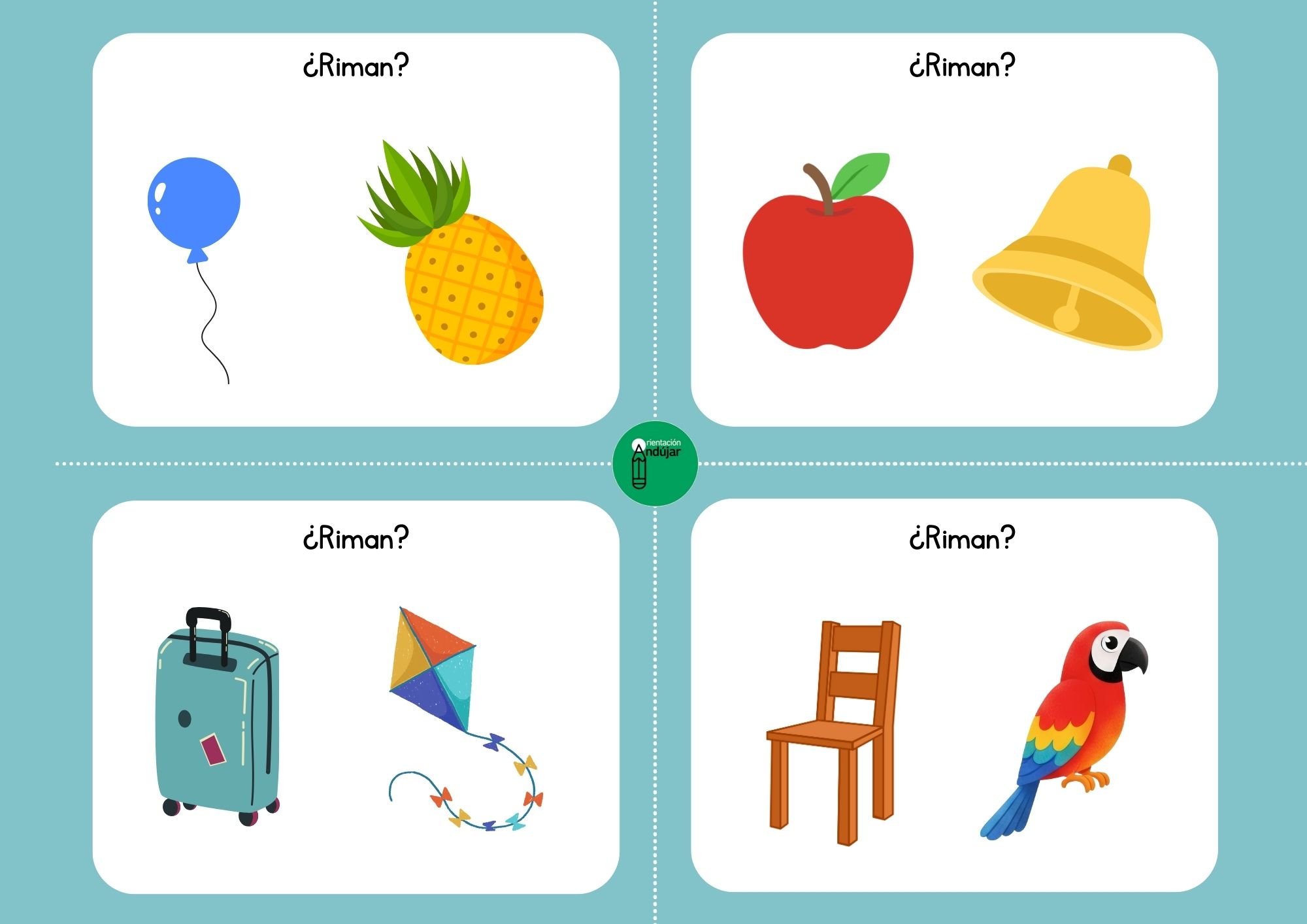 Cada tarjeta presenta un desafío diferente que permite a los alumnos trabajar de manera activa y motivadora. Entre los retos se incluyen: describir imágenes, contar el número de sílabas, identificar palabras que riman, leer y memorizar el orden de las palabras y realizar actividades de expresión oral creativa. Todas las tarjetas son ilustrativas y muy visuales, lo que facilita la comprensión y hace que los retos sean atractivos para los alumnos.