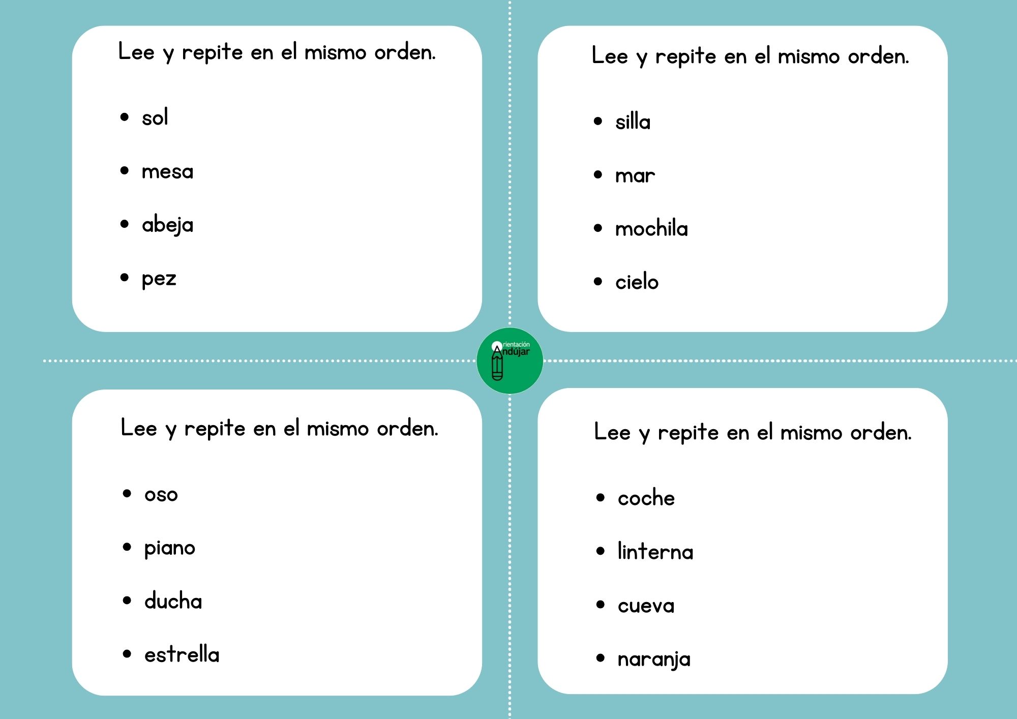 La dinámica puede plantearse en clase como un juego o reto, añadiendo un toque lúdico que incentiva la participación y el interés. Además, este recurso es ideal para alumnos de educación especial o con trastornos del lenguaje, ya que permite adaptar la dificultad, trabajar la atención y la memoria, y fomentar la comunicación en un entorno seguro y motivador.