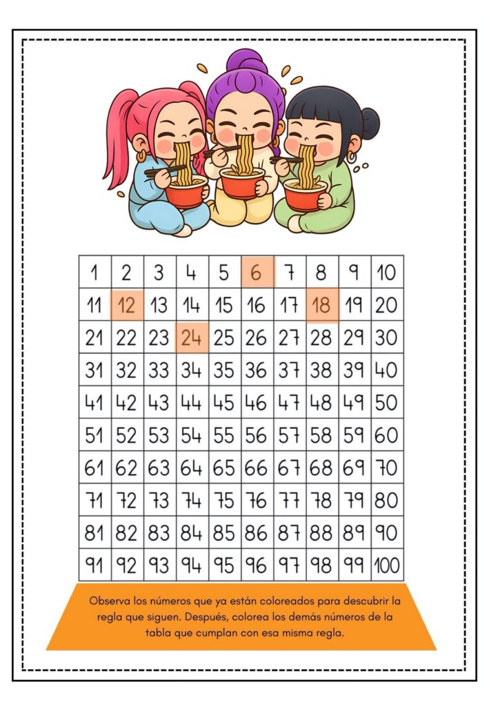 Actividades con la tabla del 100 para observar patrones y relaciones num茅ricas.