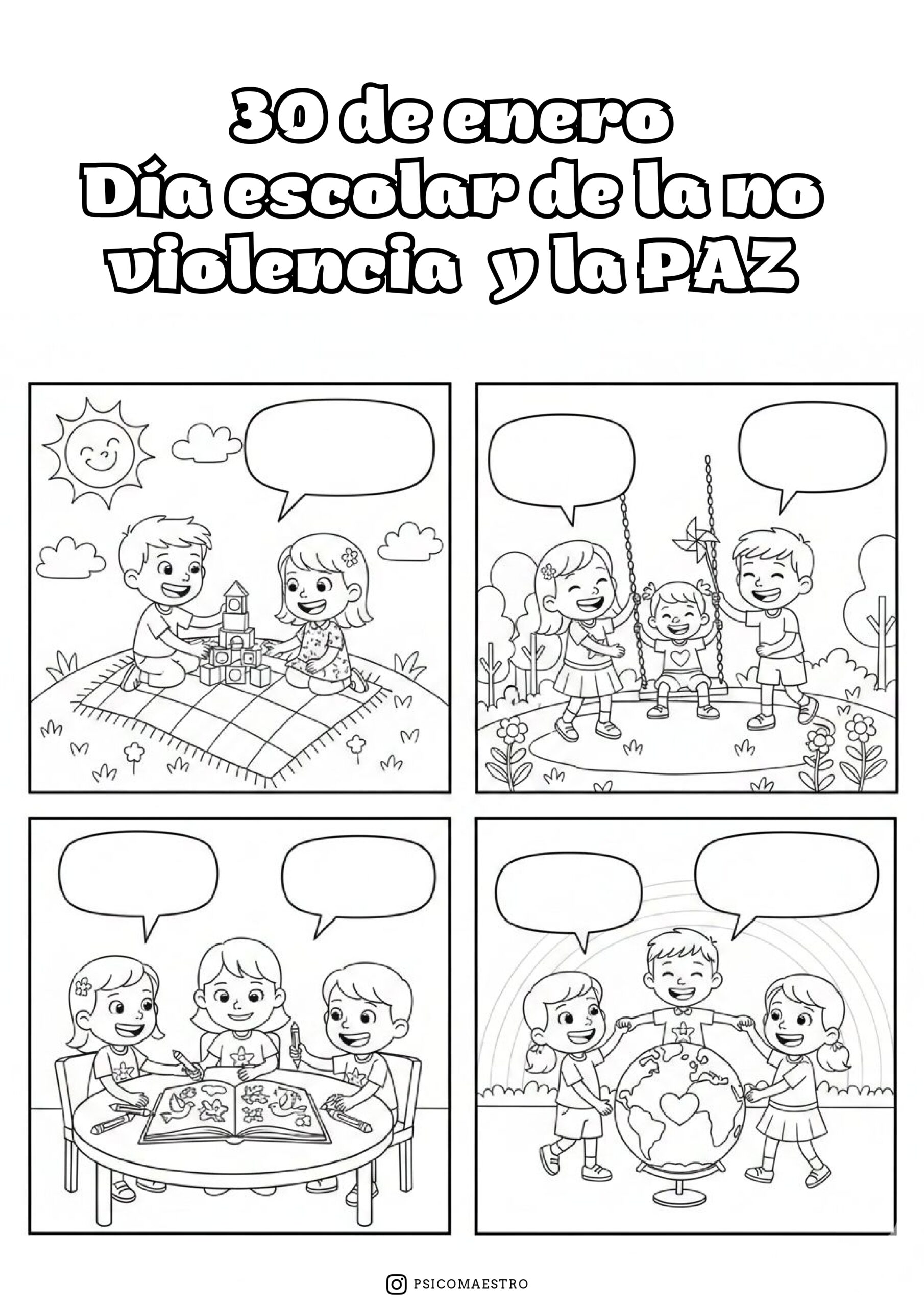 Con motivo del Día Escolar de la Paz y la No Violencia, compartimos un pack de actividades variadas para trabajar este día tan importante en el aula de forma creativa y motivadora, creado por nuestro compi @psicomaestro.