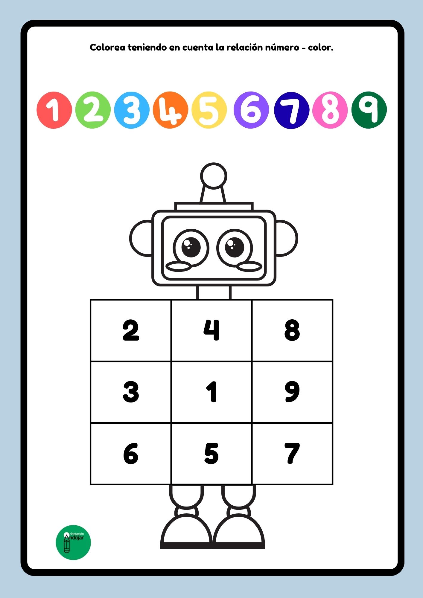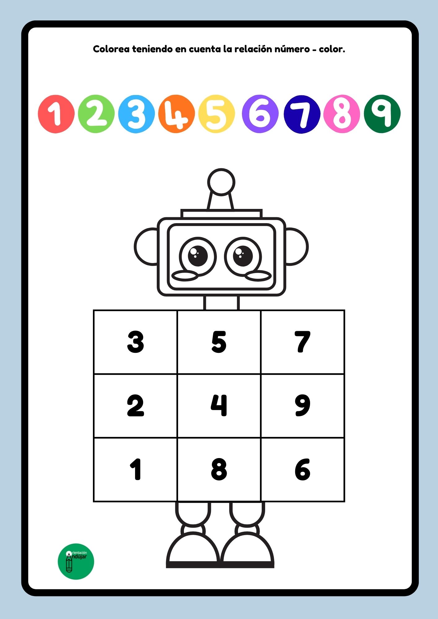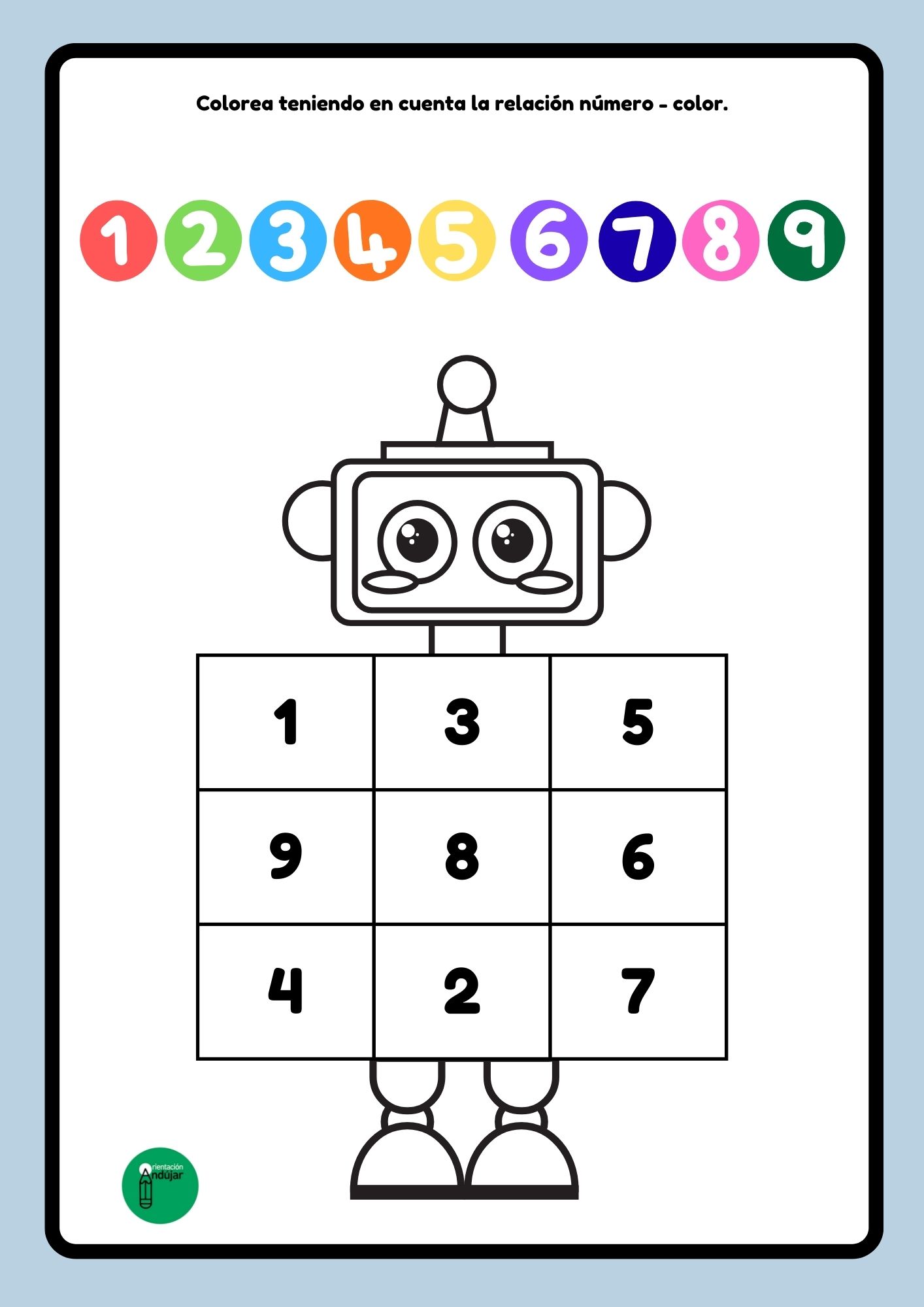 Compartimos una actividad ideal para trabajar la atención y la concentración infantil a través de números y colores, protagonizada por un simpático robot que hará el aprendizaje mucho más motivador.