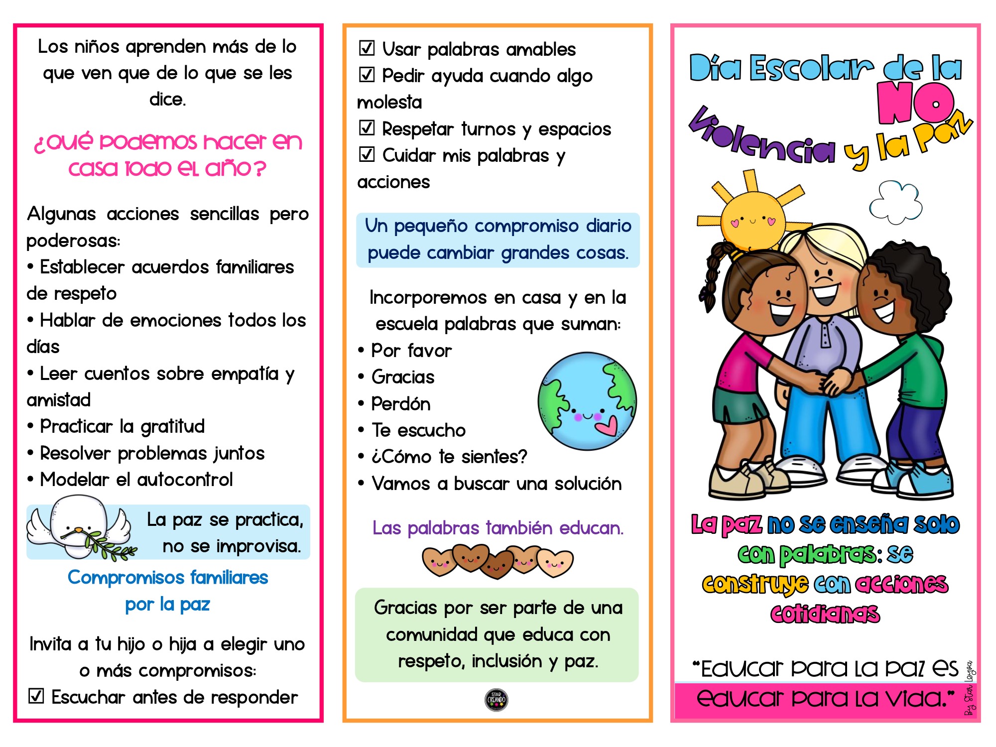 Tríptico Día Escolar de la No Violencia y la Paz StarCreando Publicado por orientacionandujar hace 3 semanas