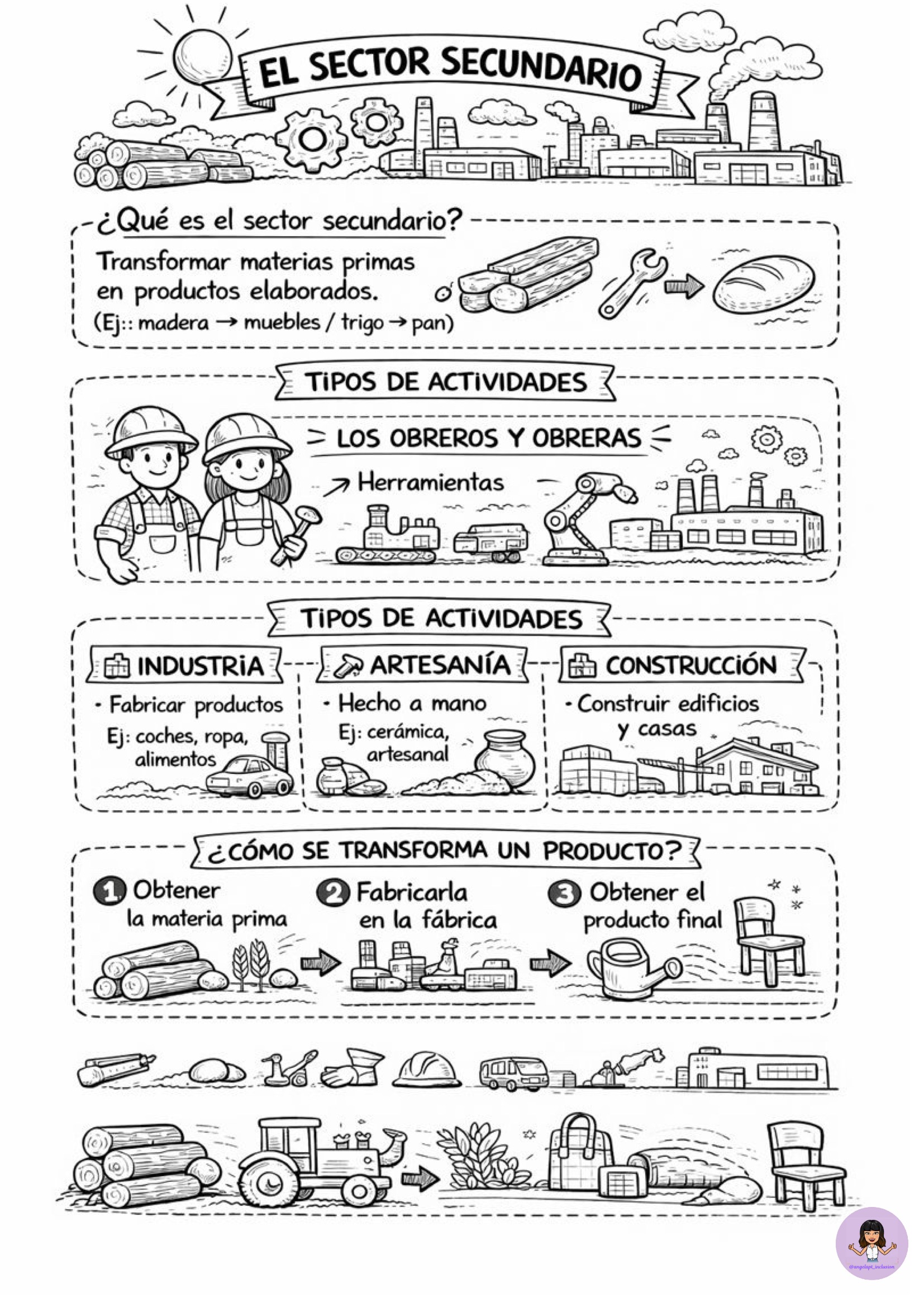 Visual Thinking del Sector Secundario y Terciario para Primaria