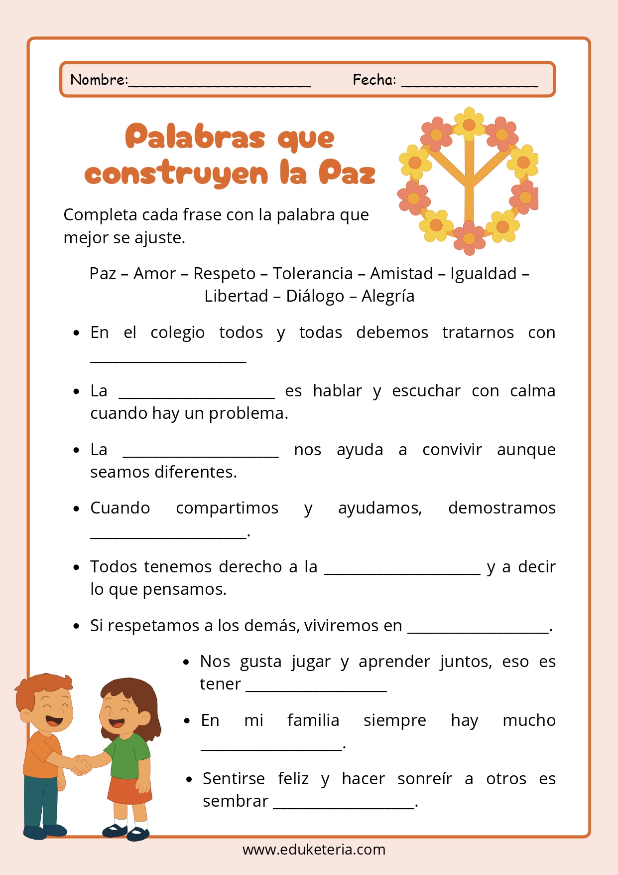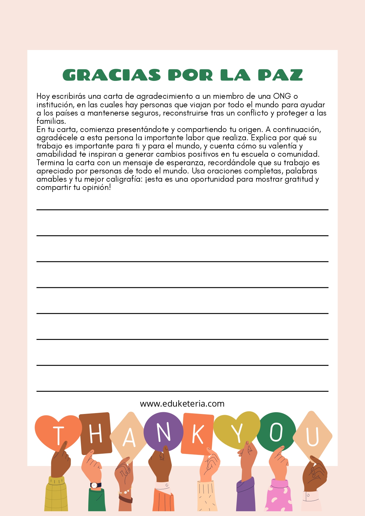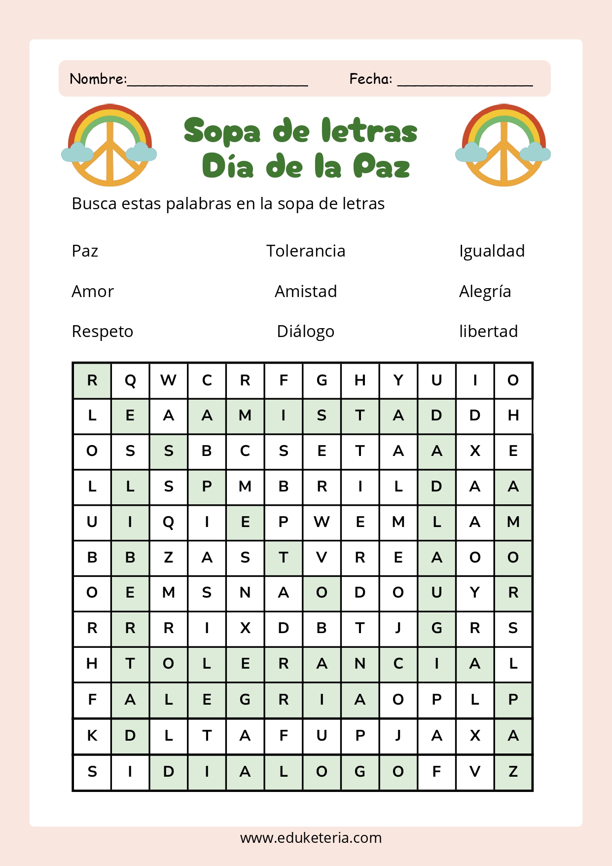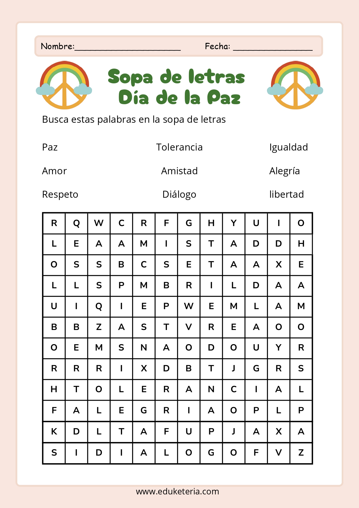 El material incluye laberintos, sopas de letras, actividades de escritura creativa y muchas propuestas más, pensadas para que el alumnado reflexione sobre la paz, el respeto y la convivencia mientras se divierte. Estas actividades permiten abordar el tema desde diferentes áreas, fomentando tanto la atención y la concentración como la creatividad y la expresión escrita.