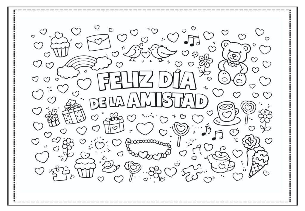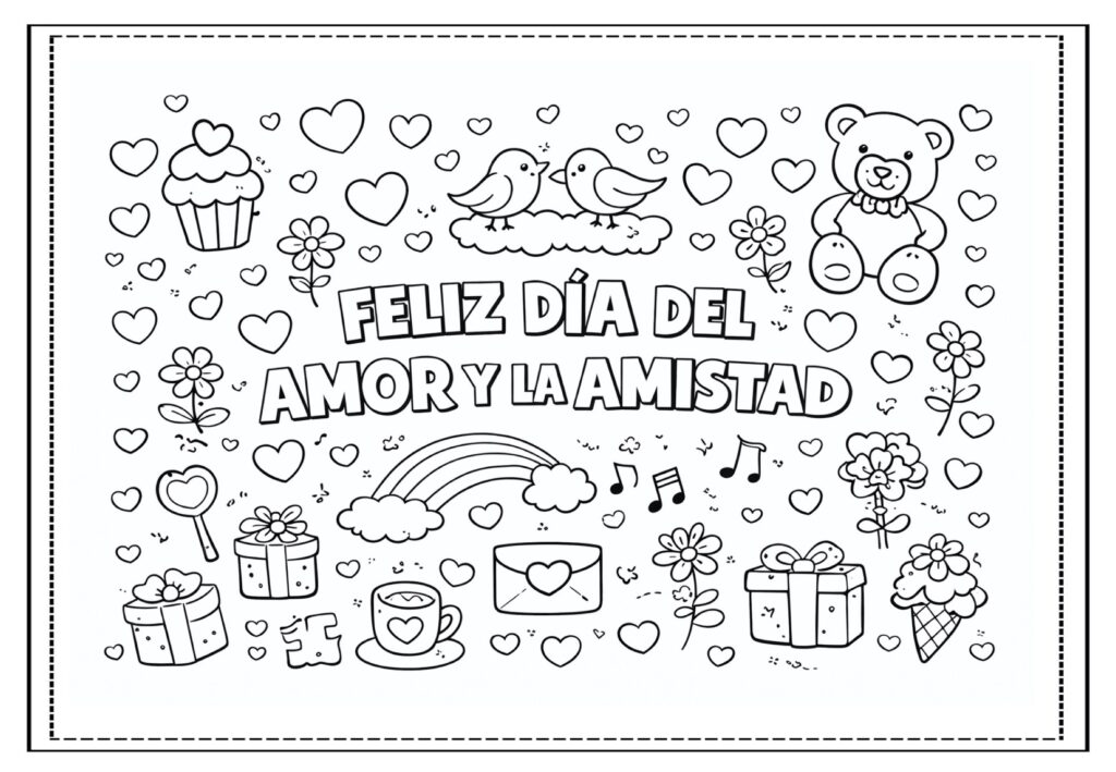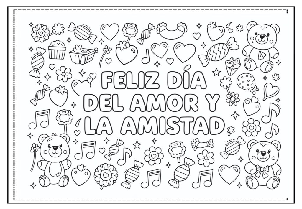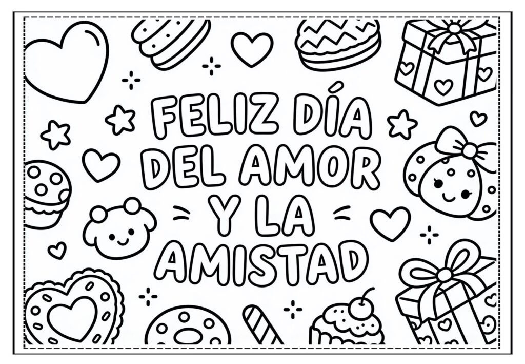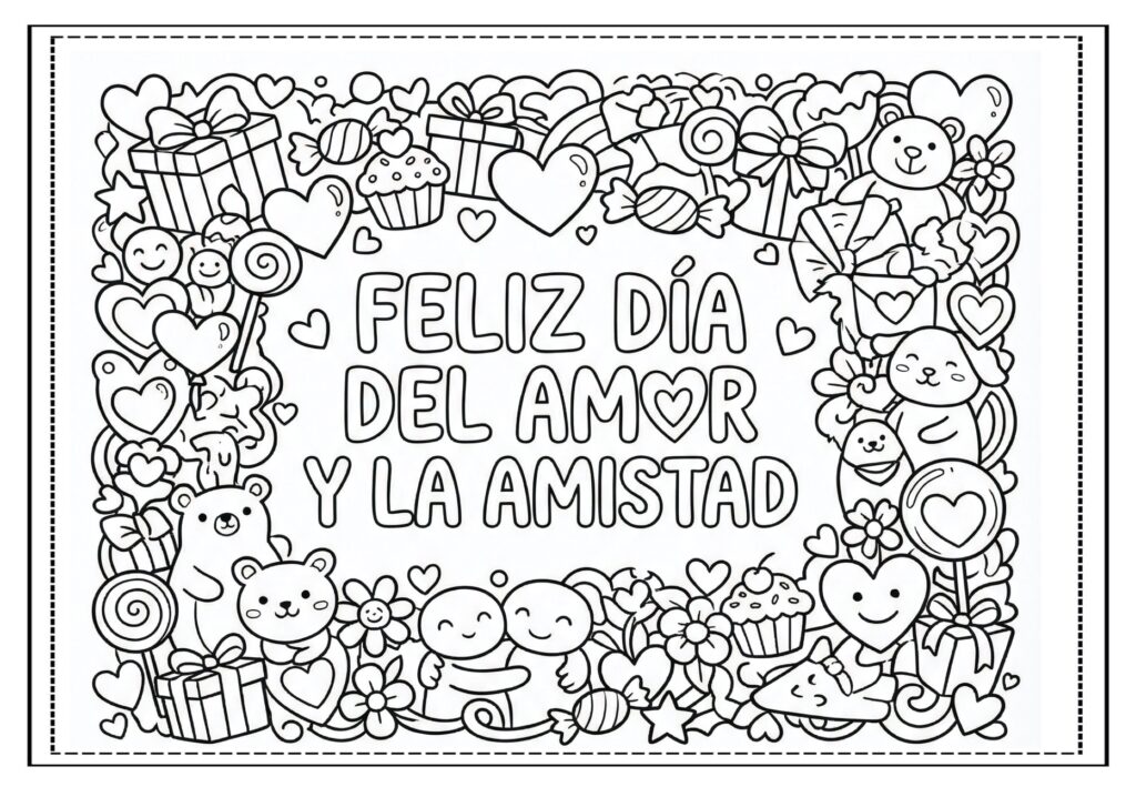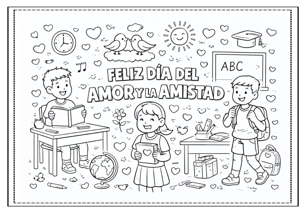 Frases centrales como “Feliz día del amor y la amistad” para decorar pasillos y aulas.