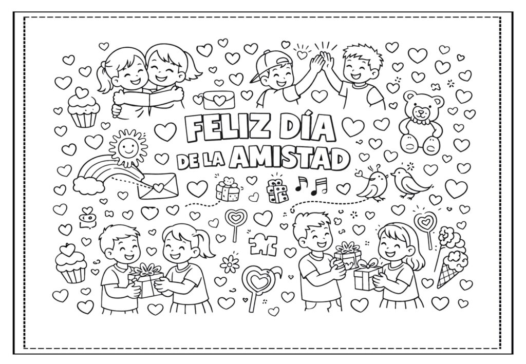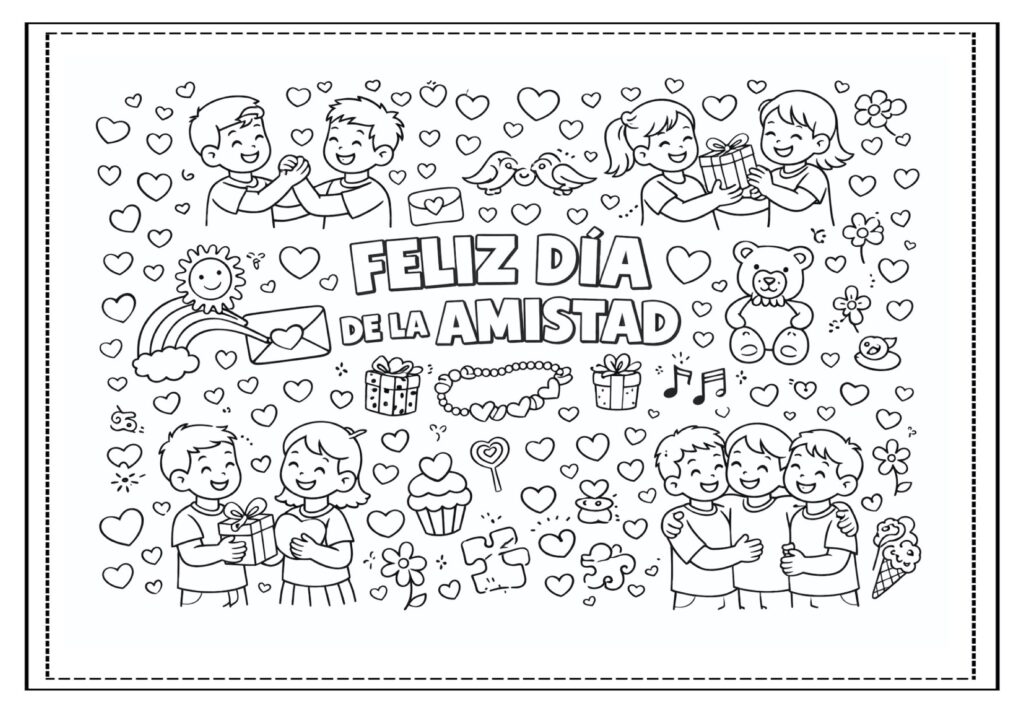 Escenas protagonizadas por niños y niñas compartiendo, ayudándose y celebrando la amistad.