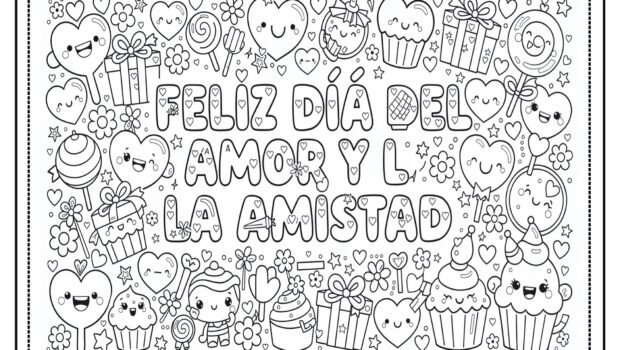 murales para colorear día del amor y la amistad 4