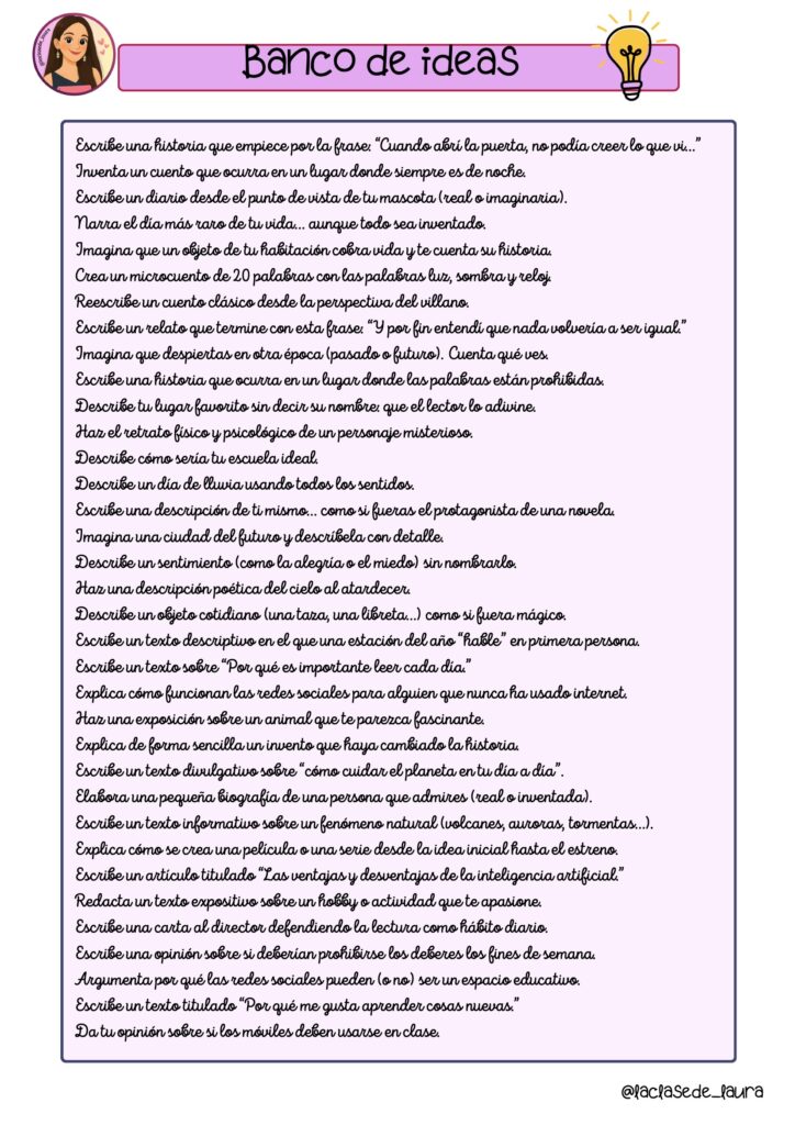 Banco de ideas para trabajar la escritura creativa